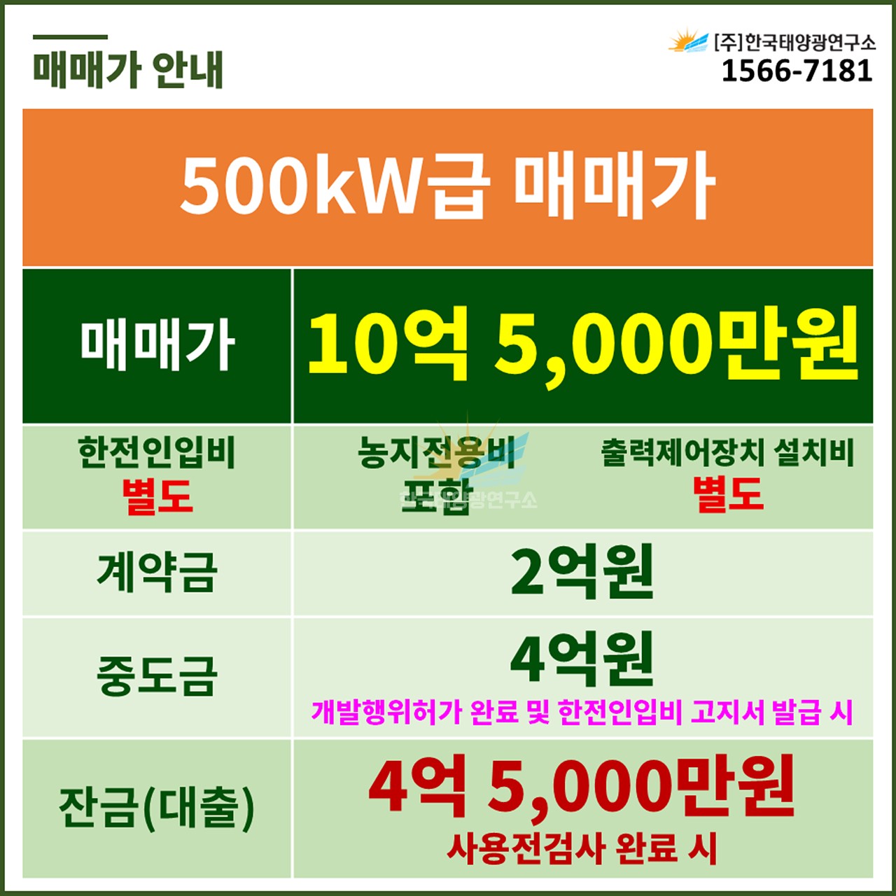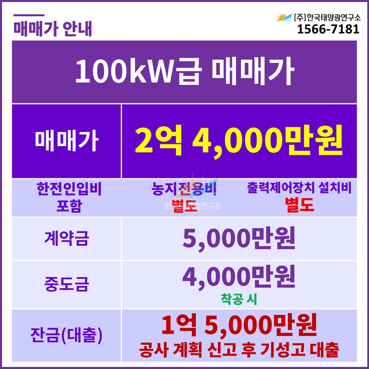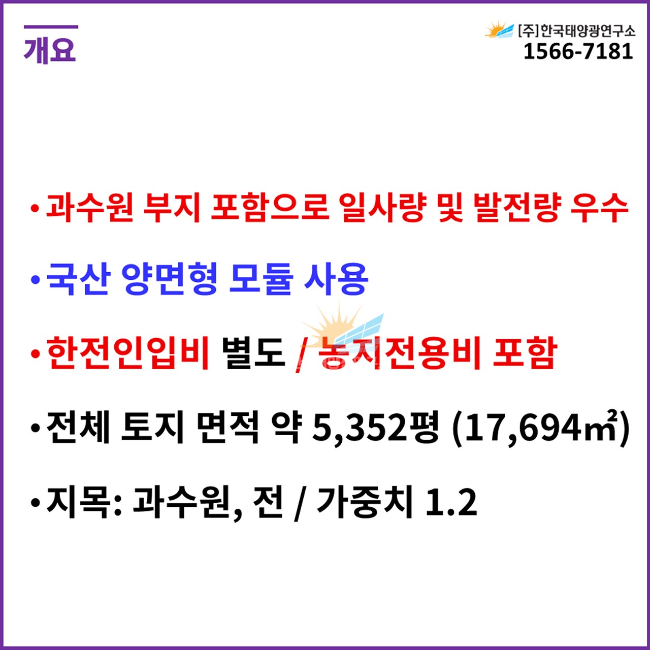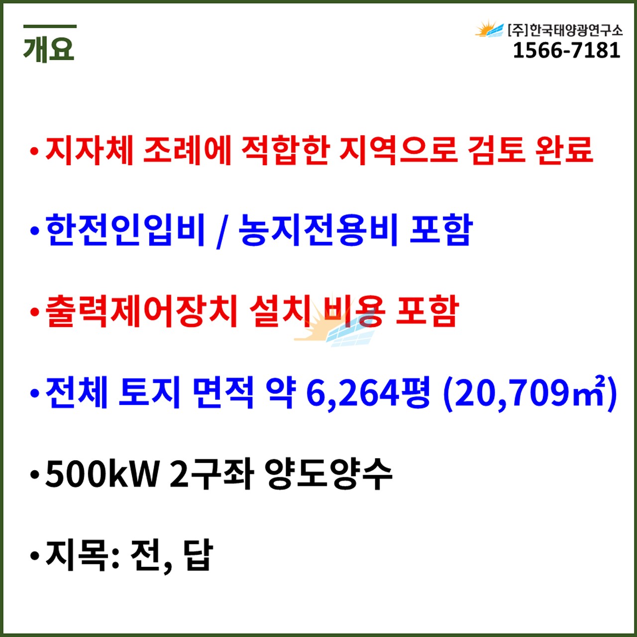 (한전인입비 포함, 농지전용비 별도 / 출력제어장치 설치 비용 별도)