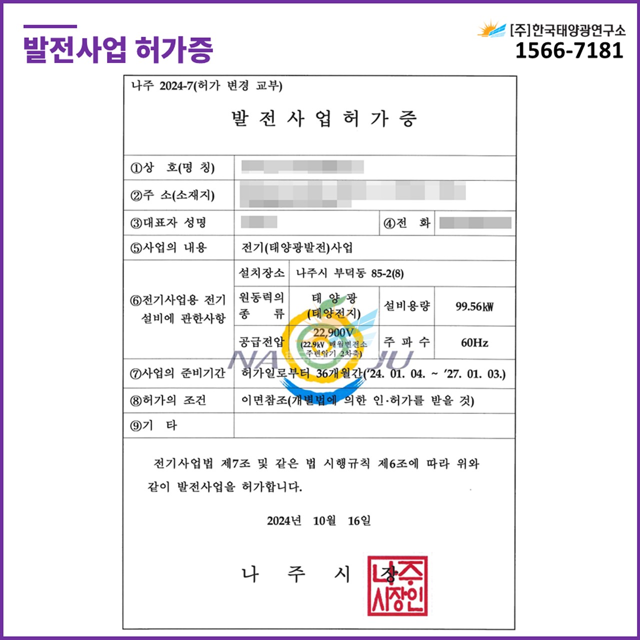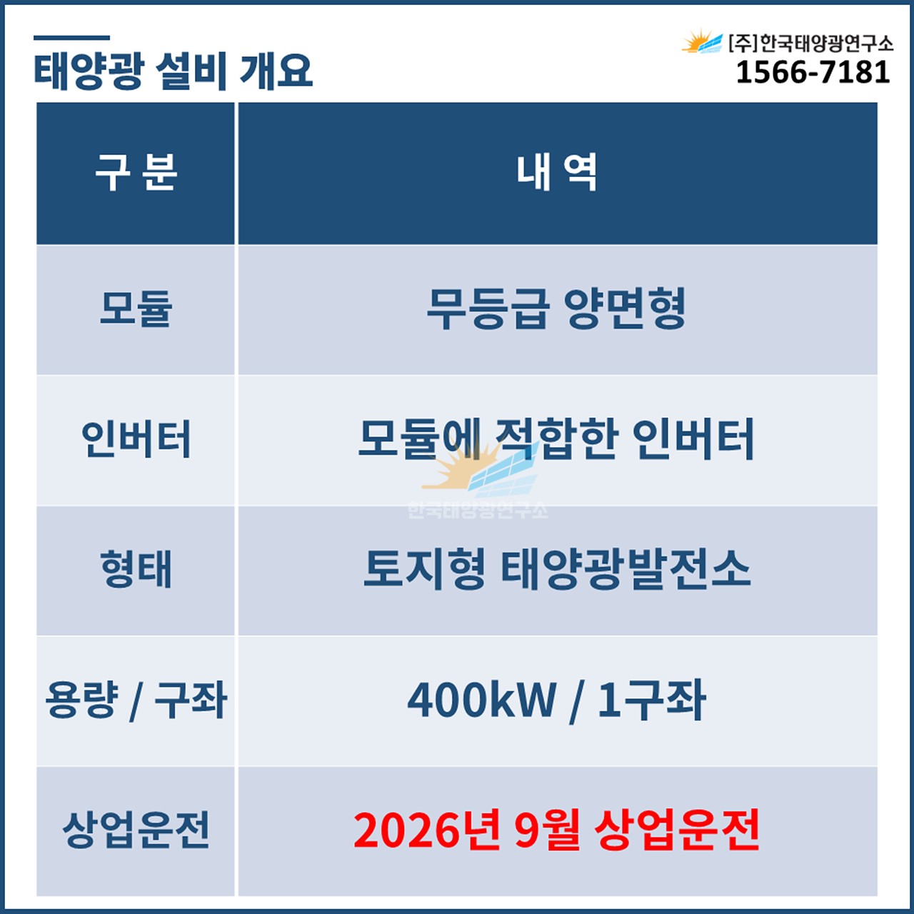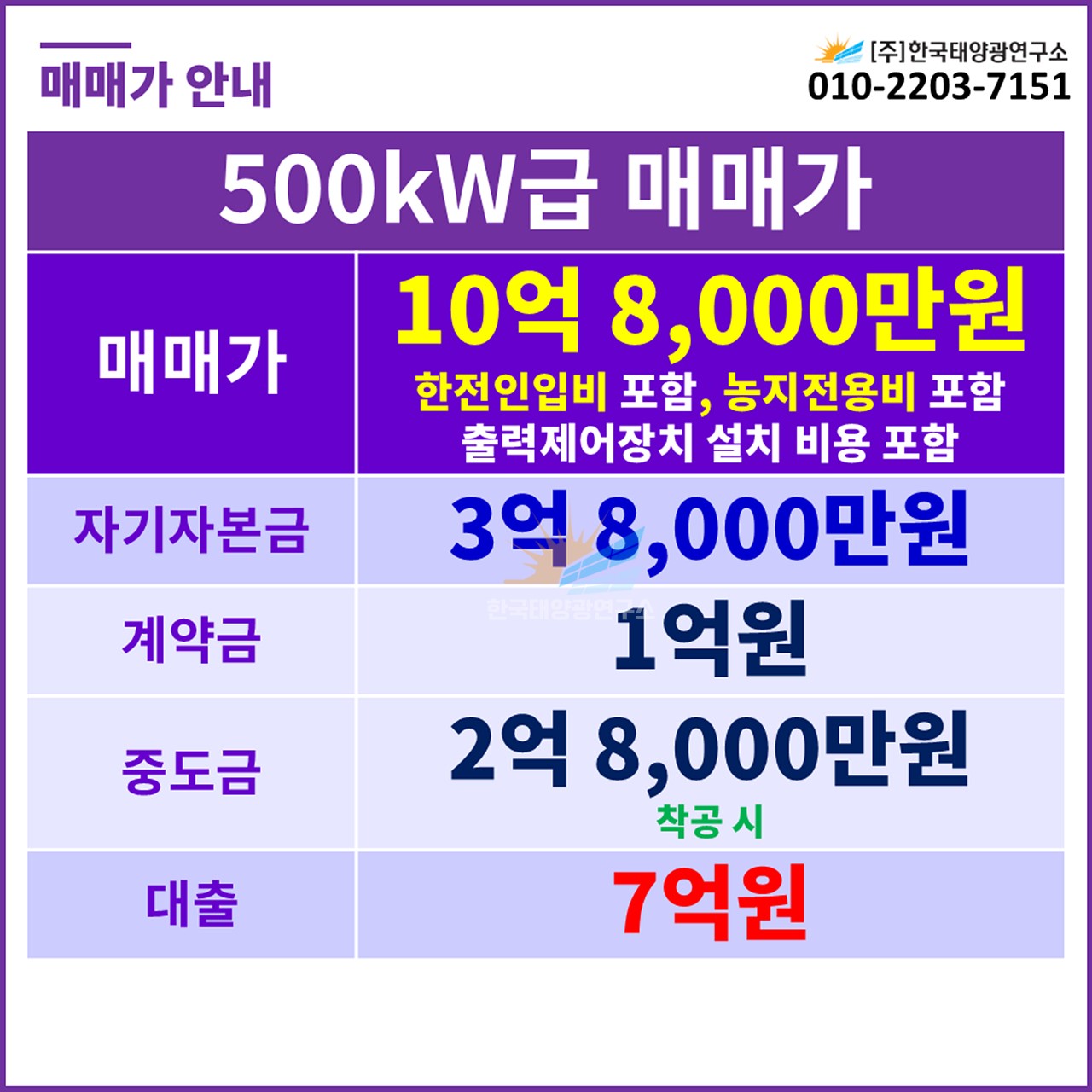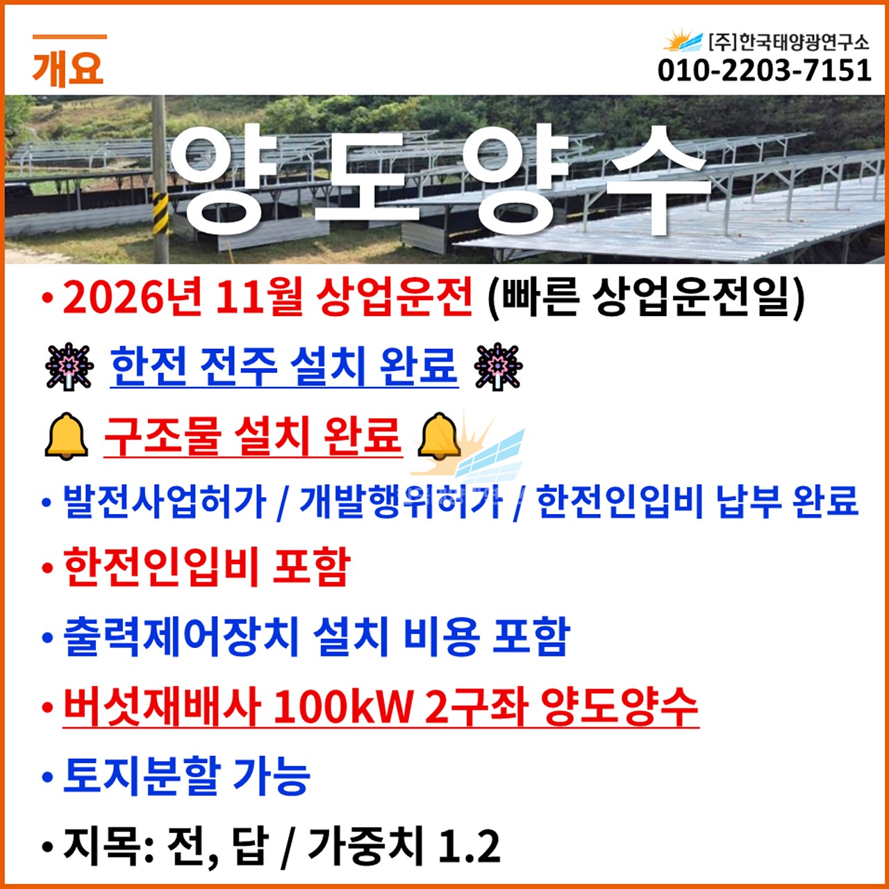 (한전인입비 포함, 농지전용비 별도 / 출력제어장치 설치 비용 별도)