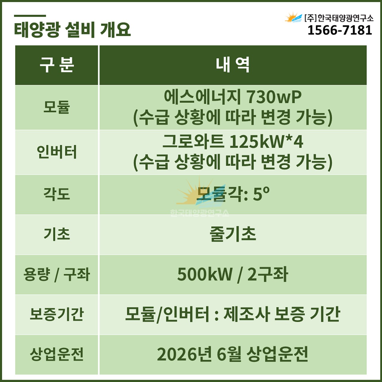 ✅ 출력제어장치 설치 비용 별도 (500kW 구좌)