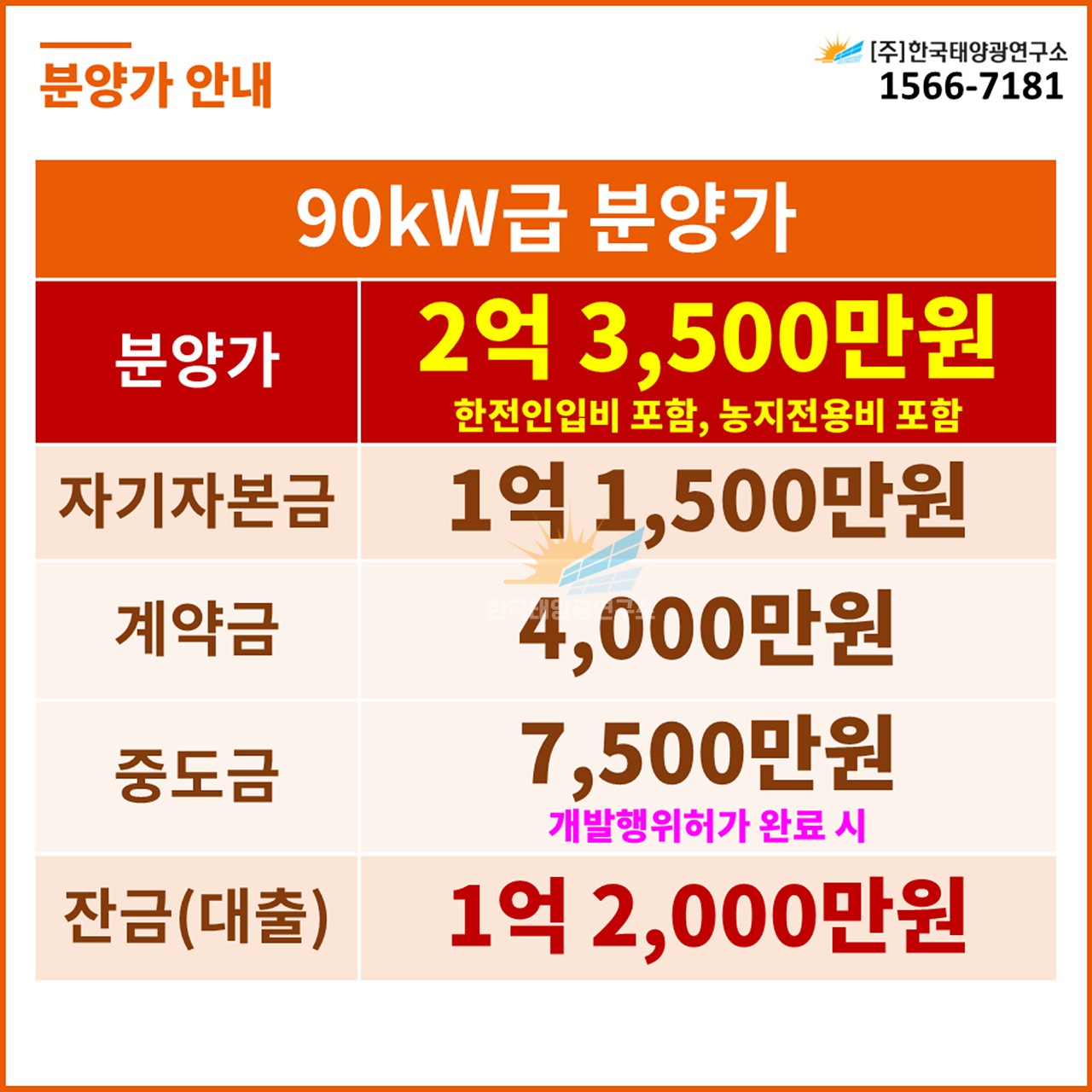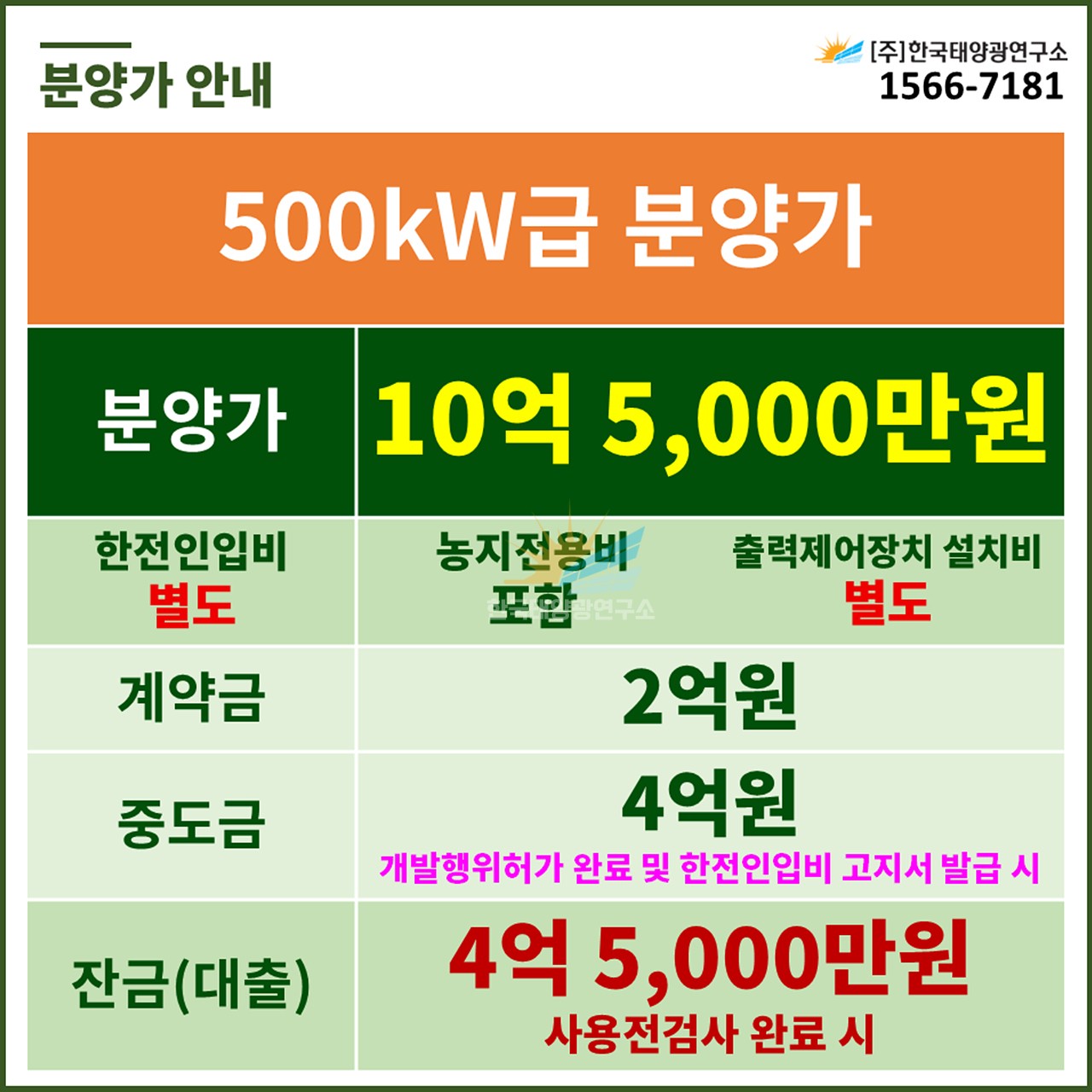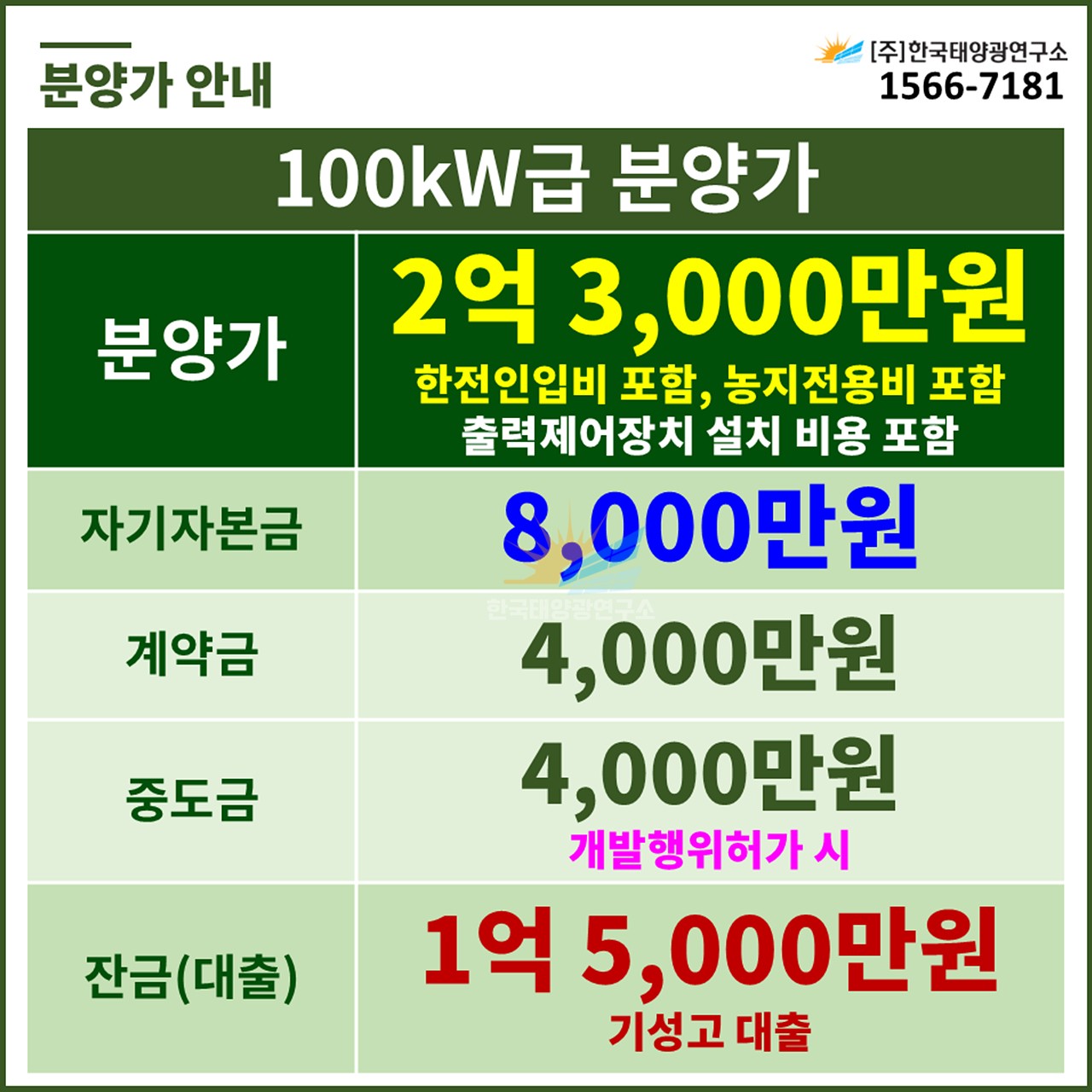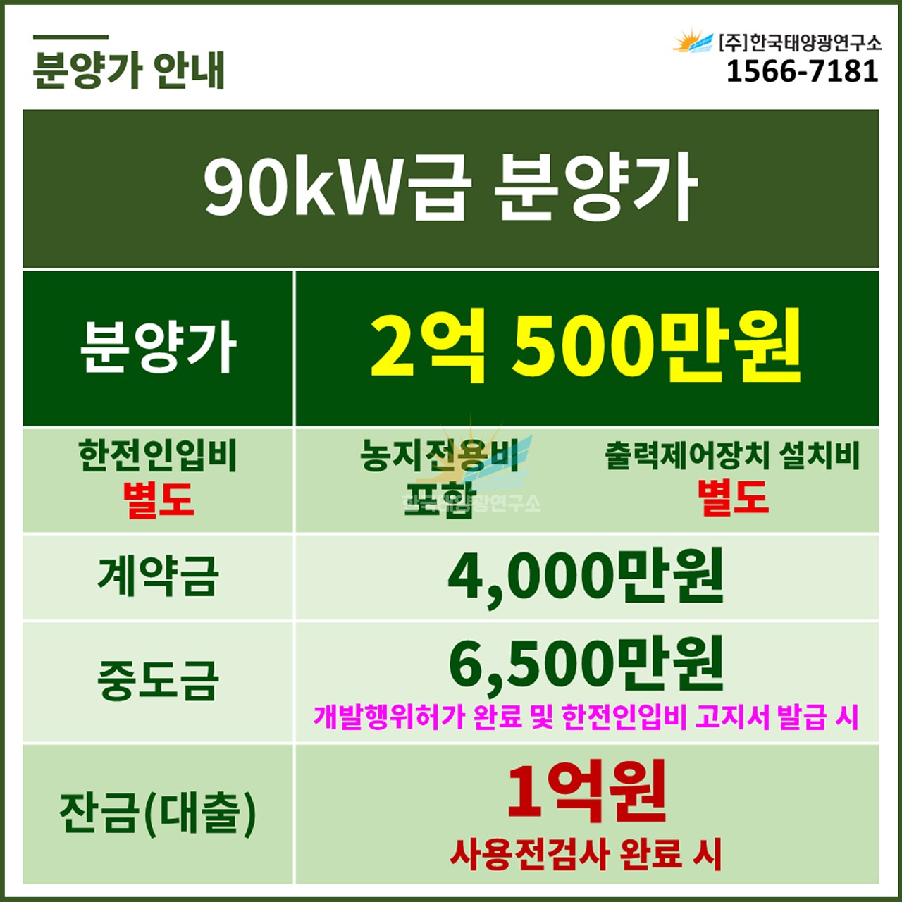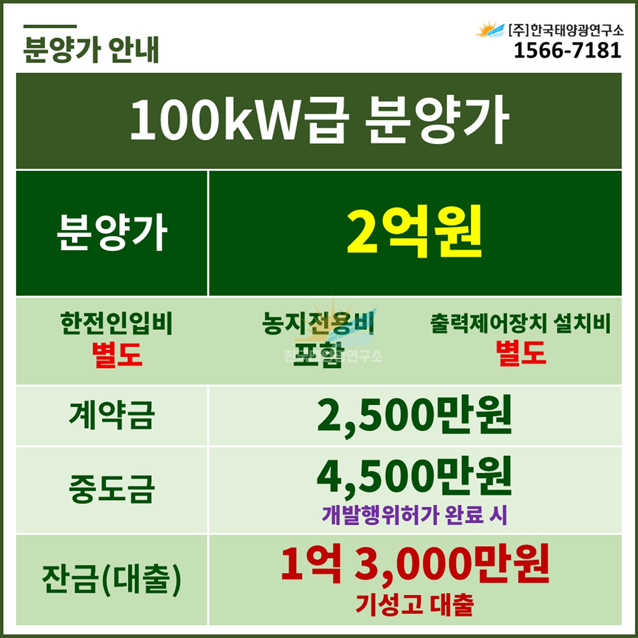 (한전인입비 별도, 농지전용비 포함 / 출력제어장치 설치 비용 별도)
