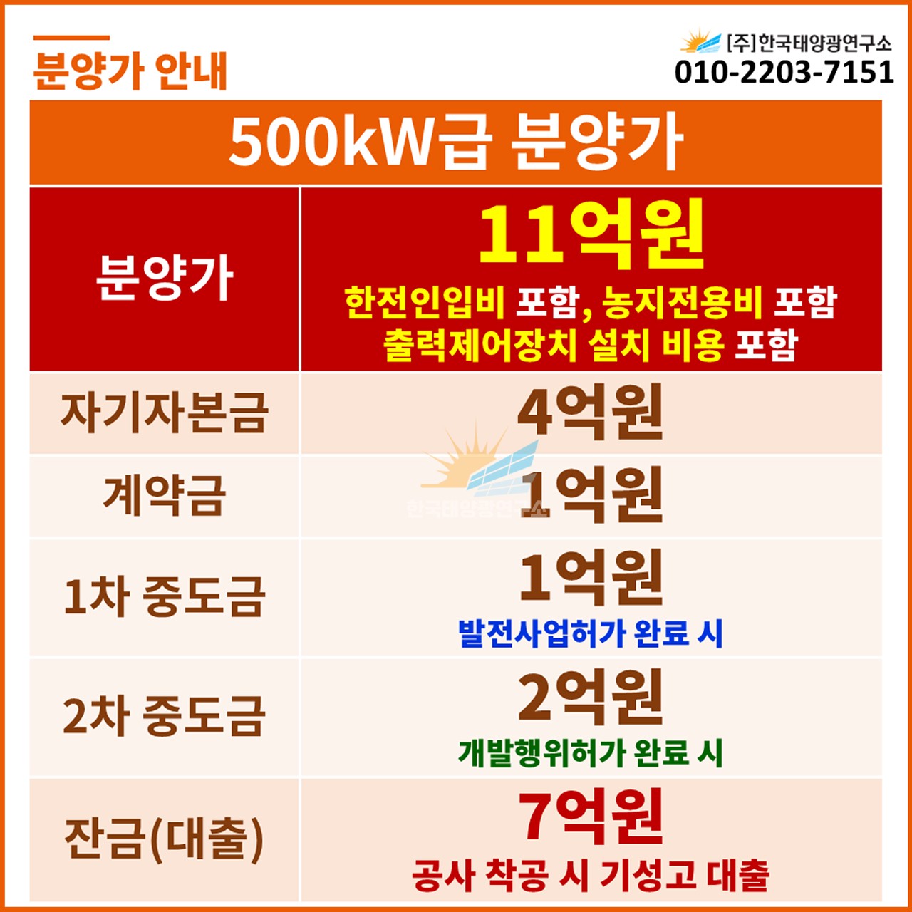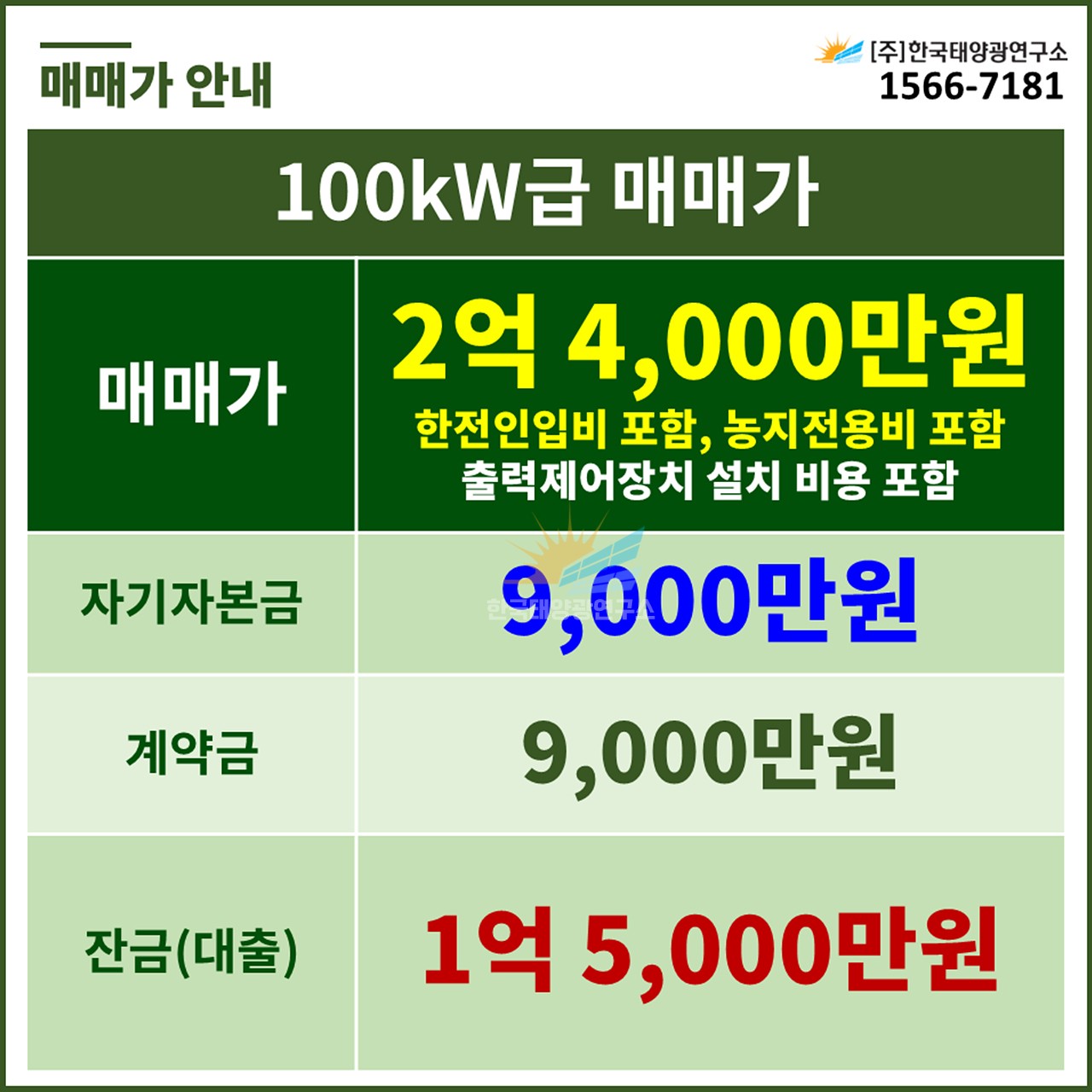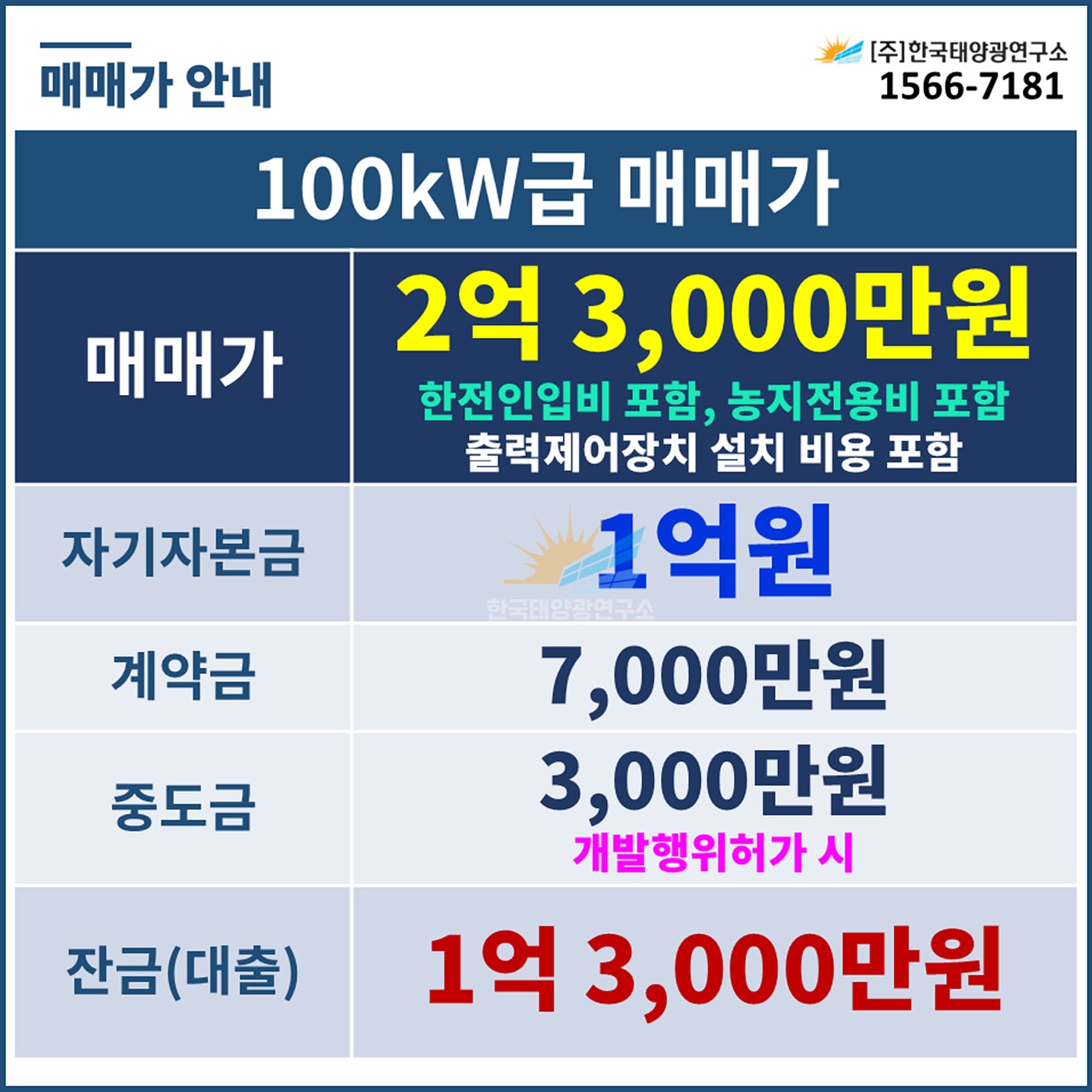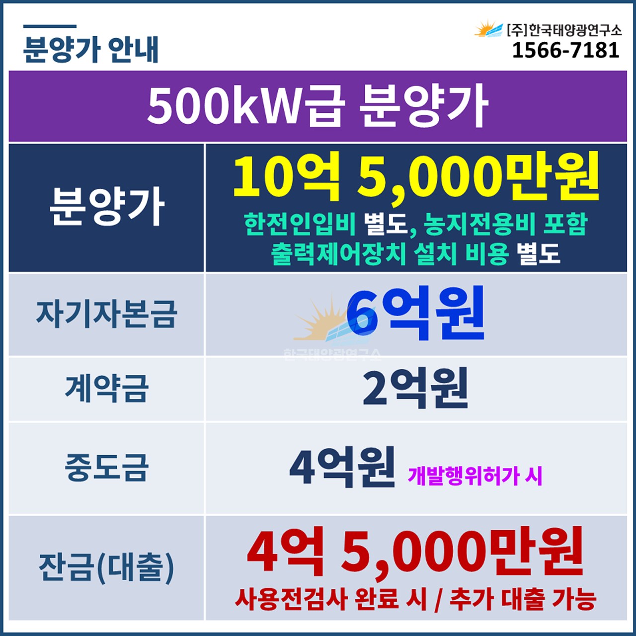 (한전인입비 별도, 농지전용비 포함 / 출력제어장치 설치 비용 별도)