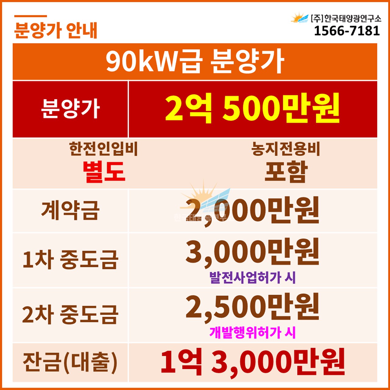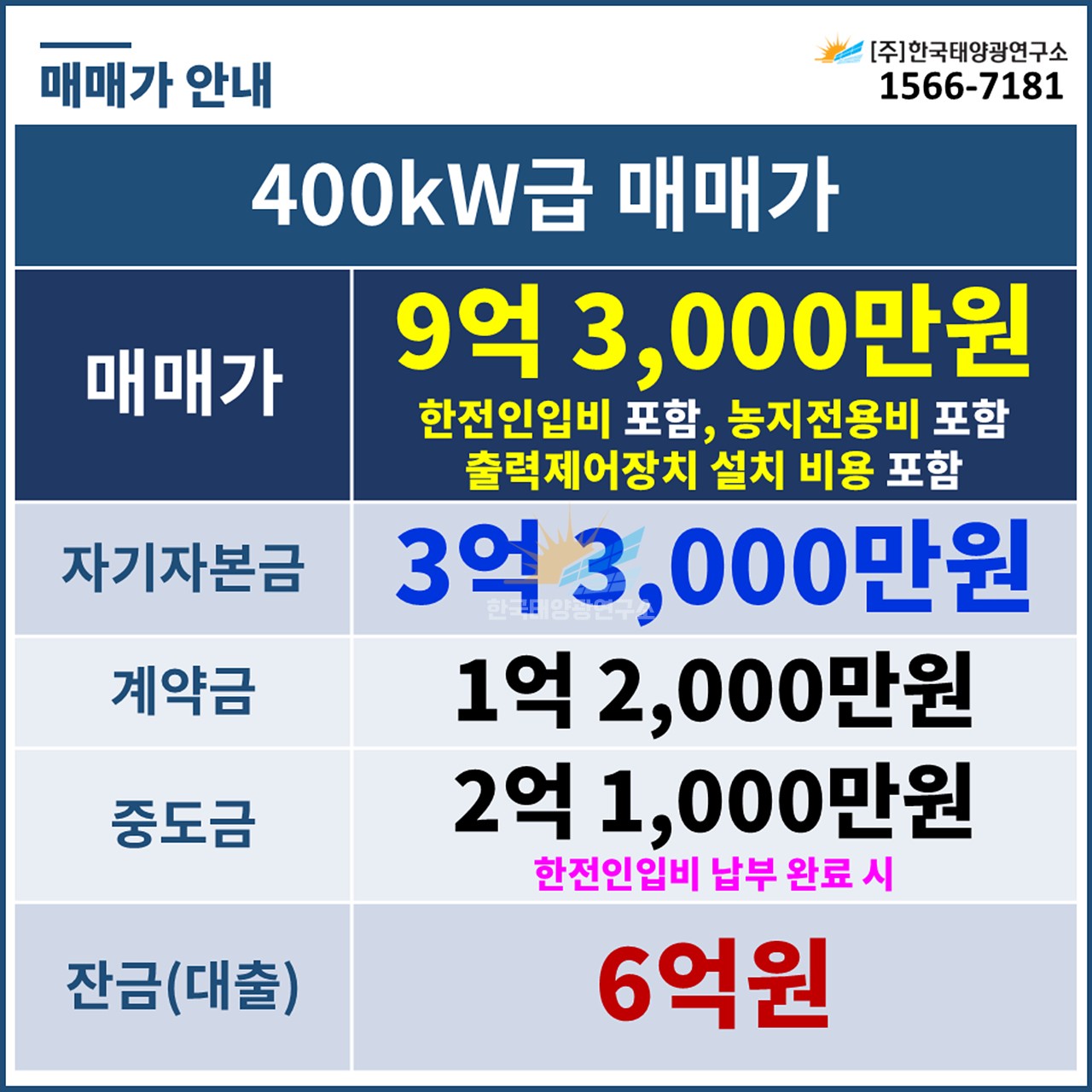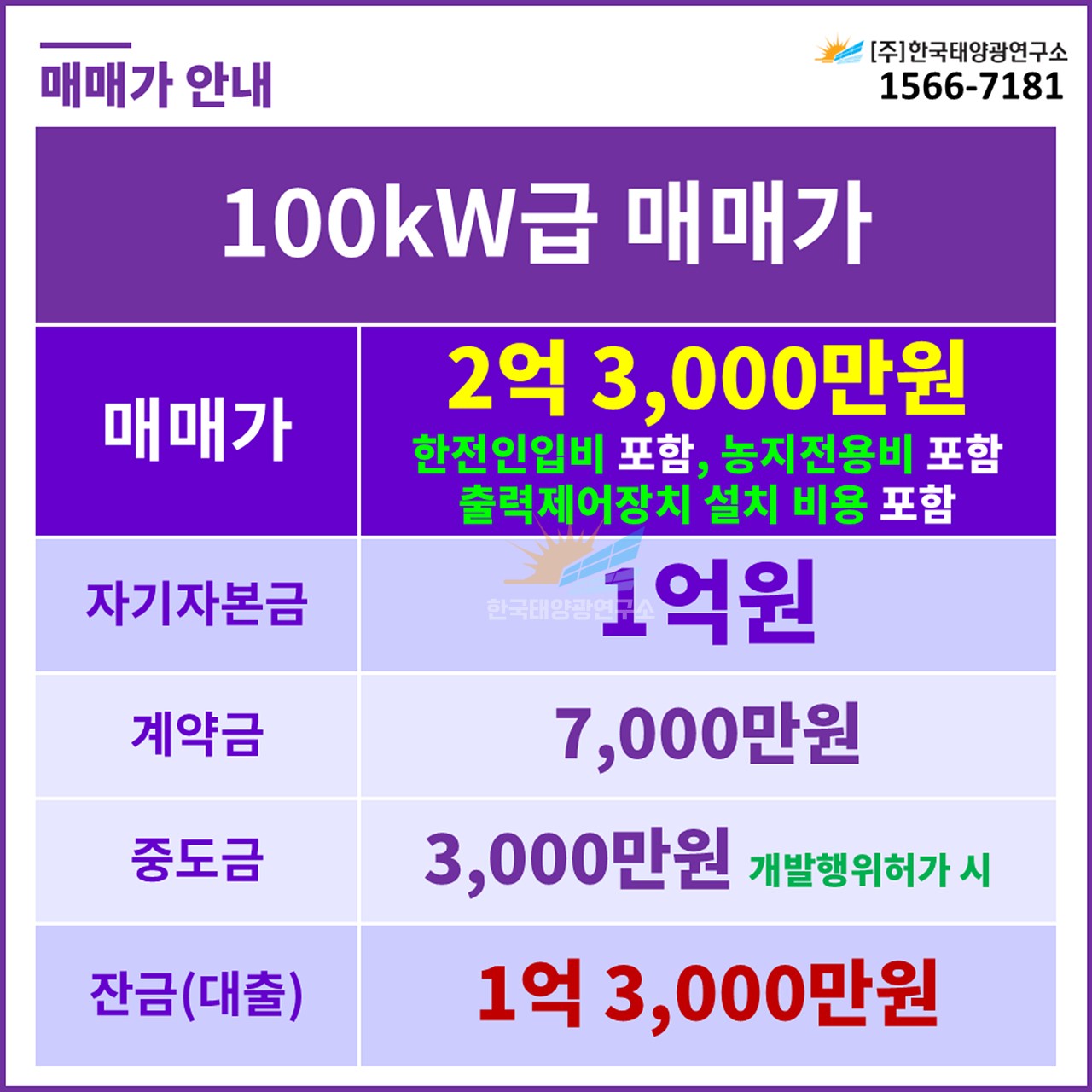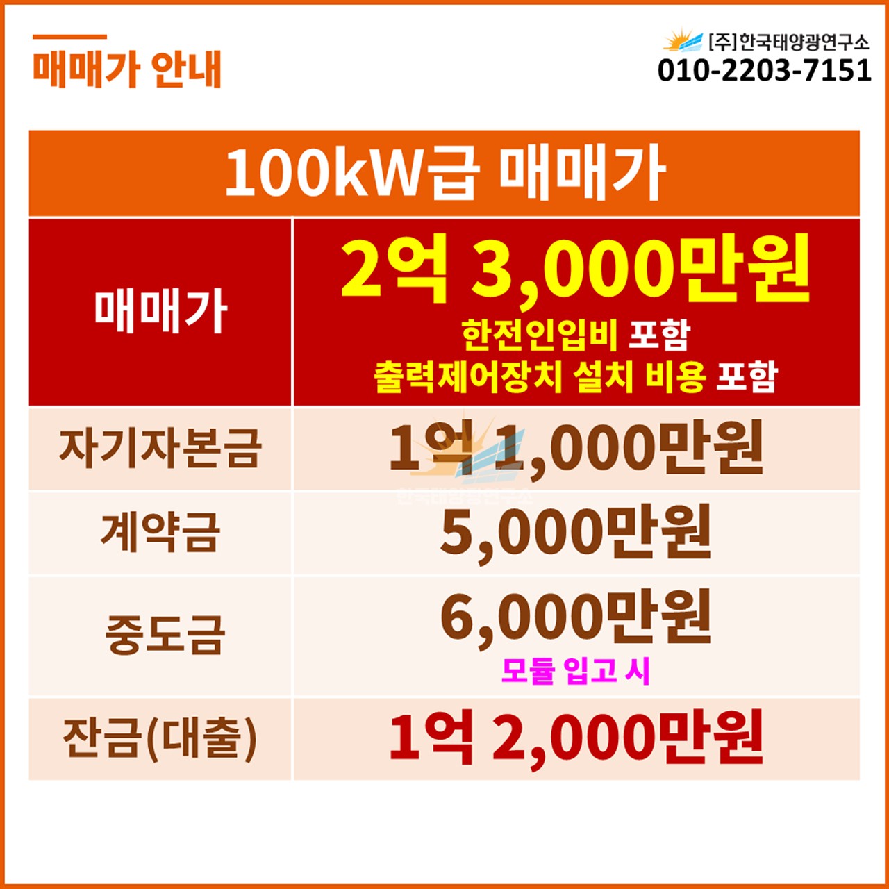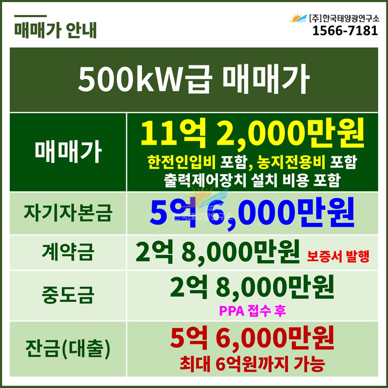 (한전인입비 별도, 농지전용비 포함 / 출력제어장치 설치 비용 별도)