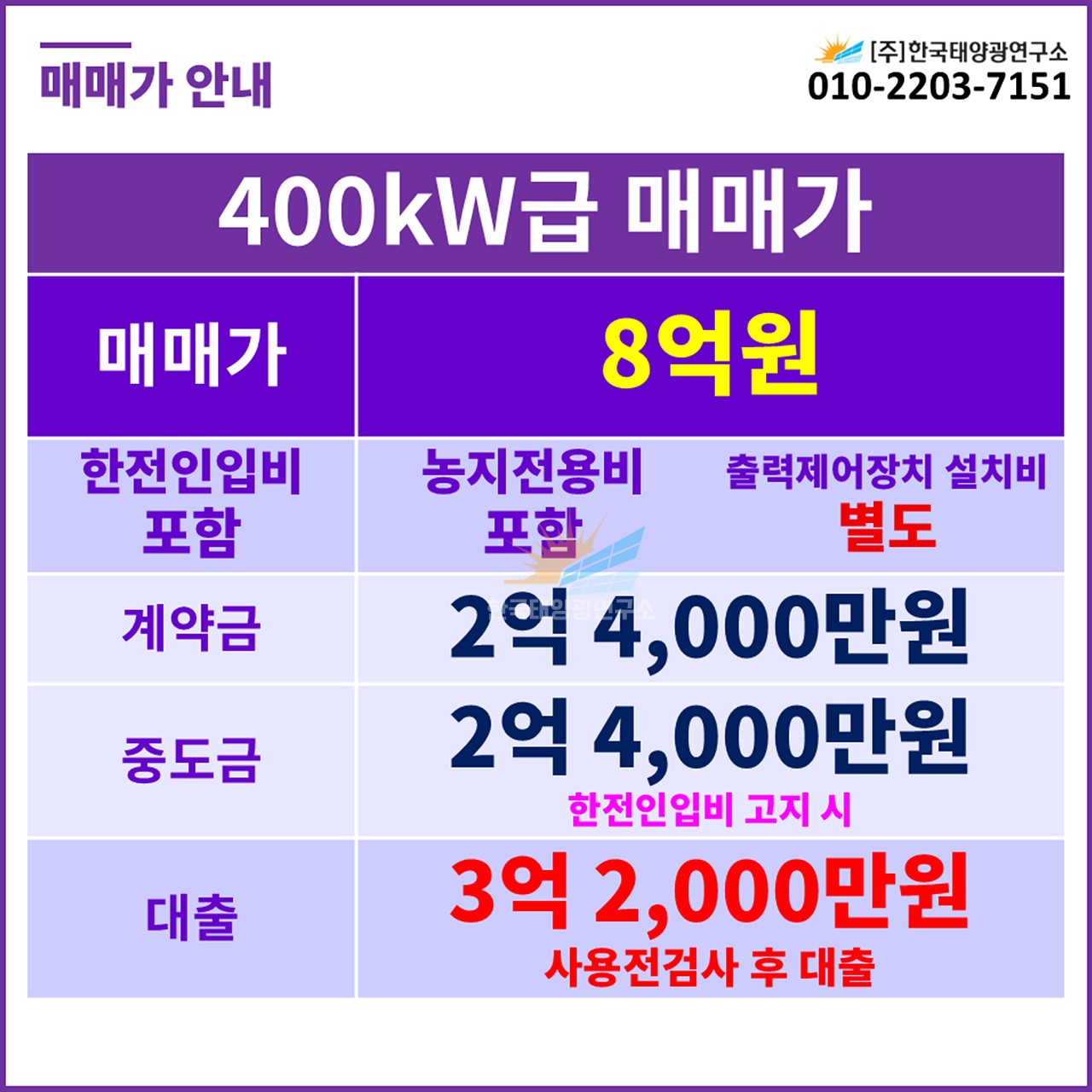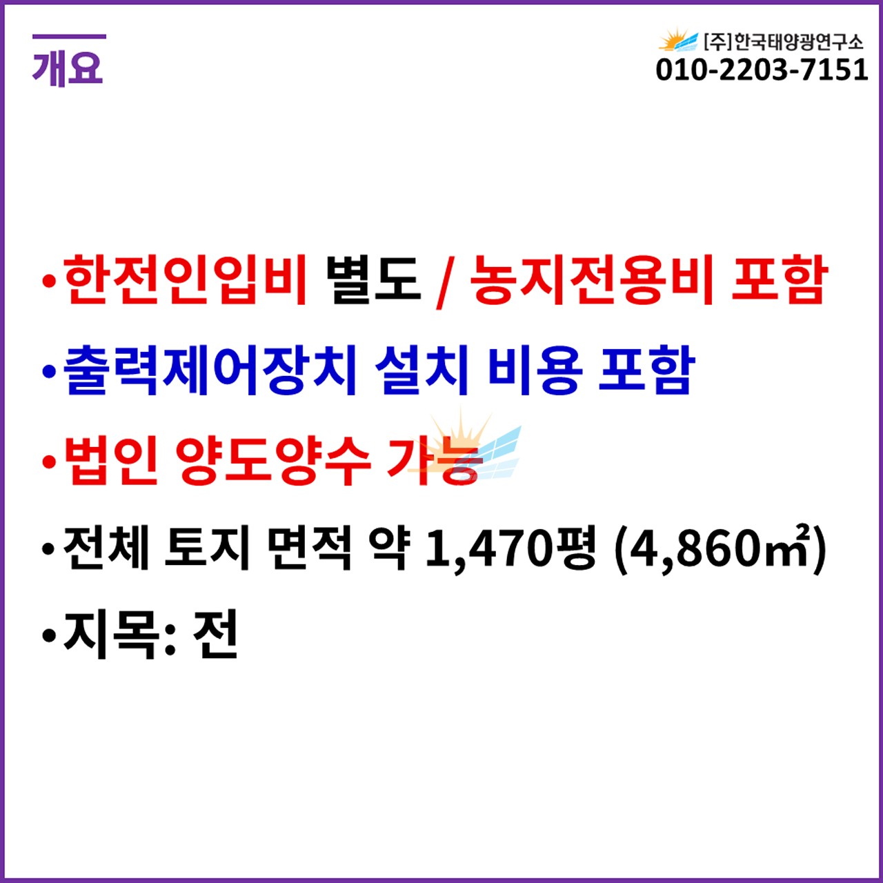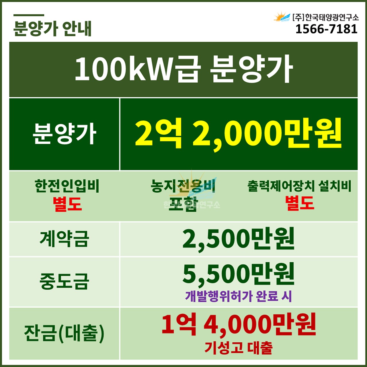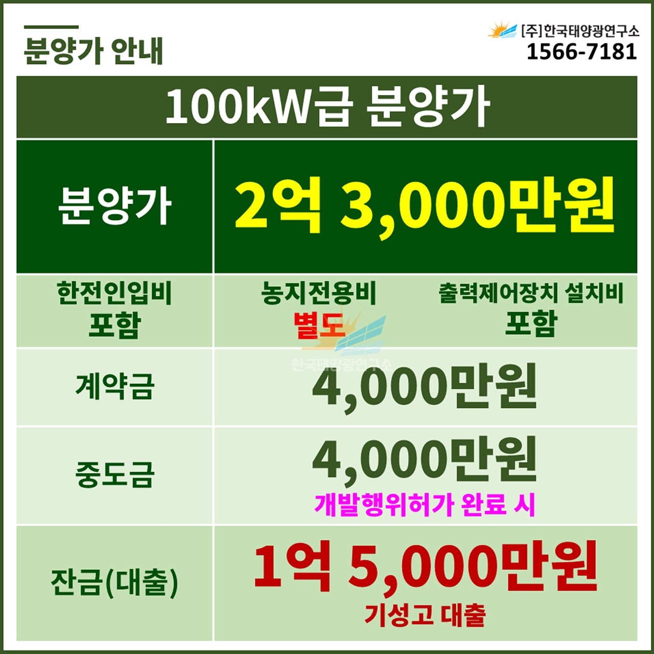 (한전인입비 별도, 농지전용비 포함 / 출력제어장치 설치 비용 별도)