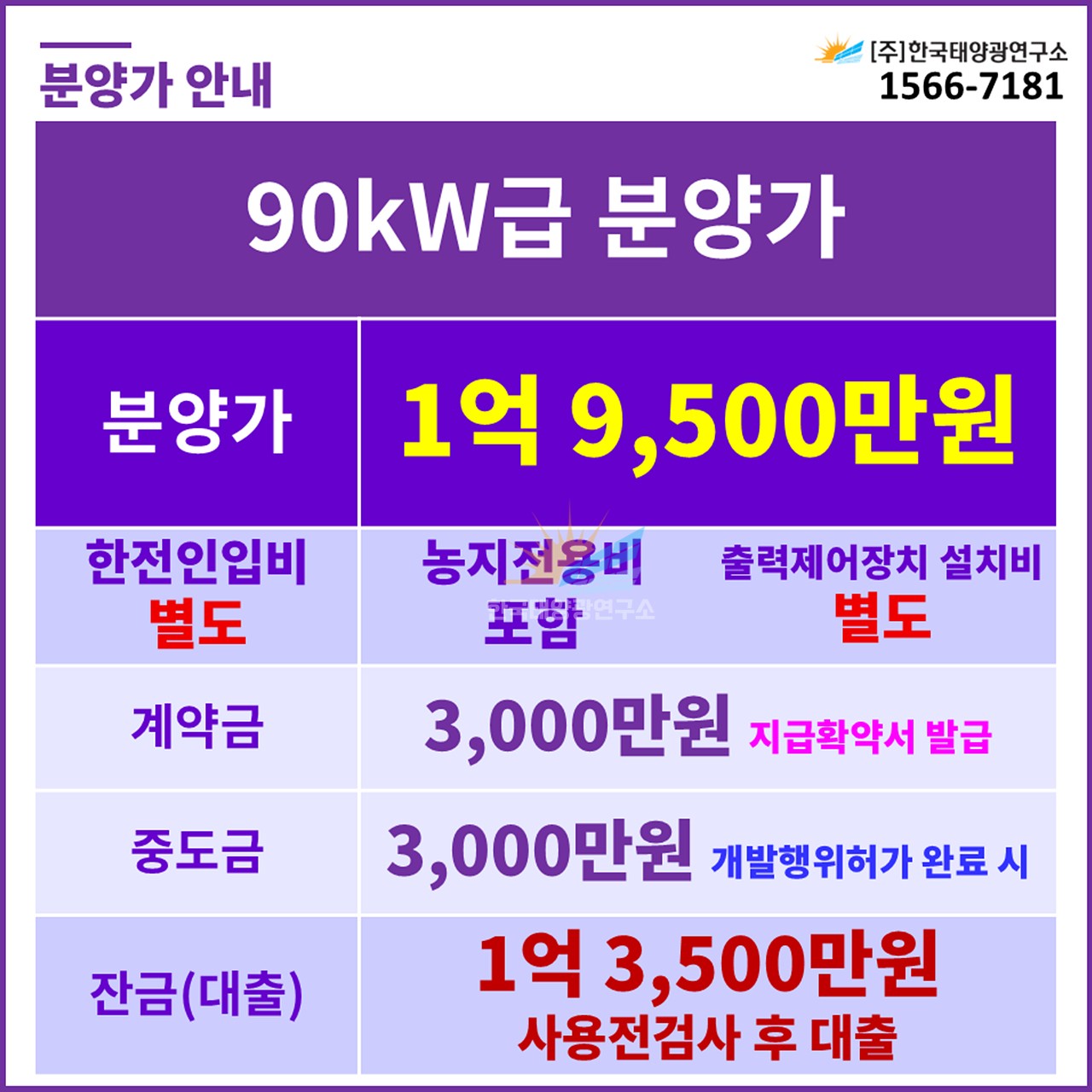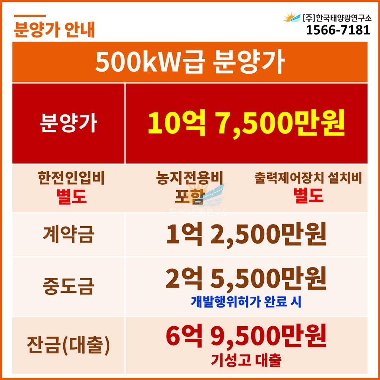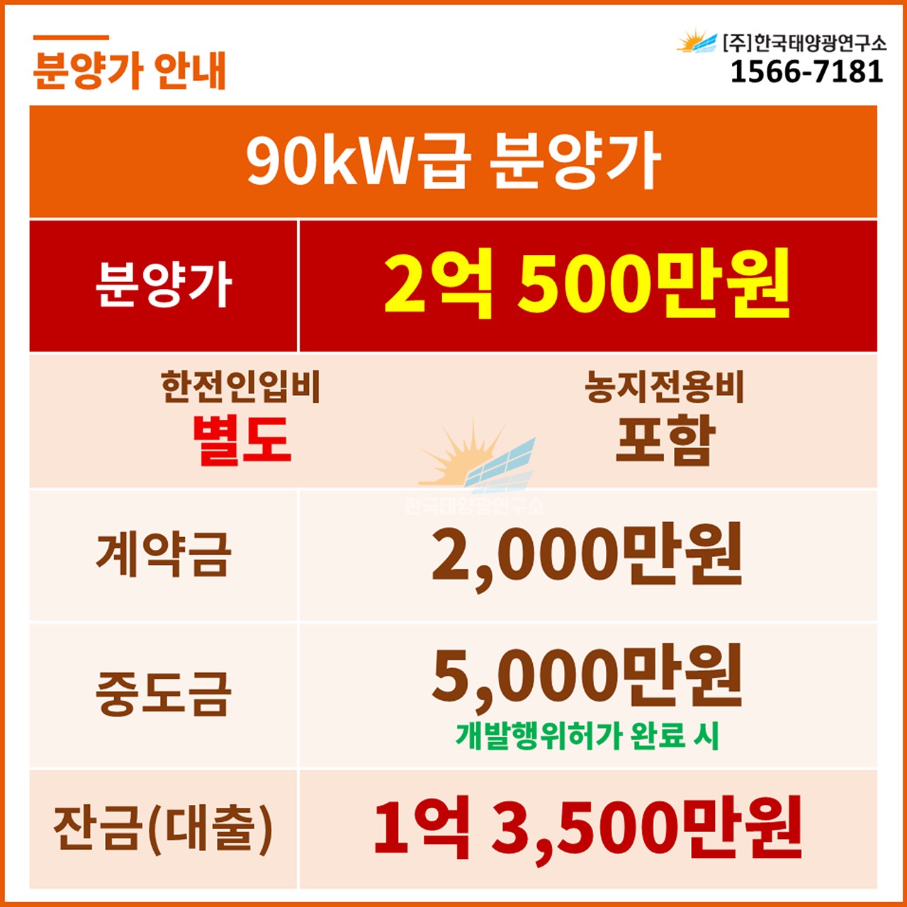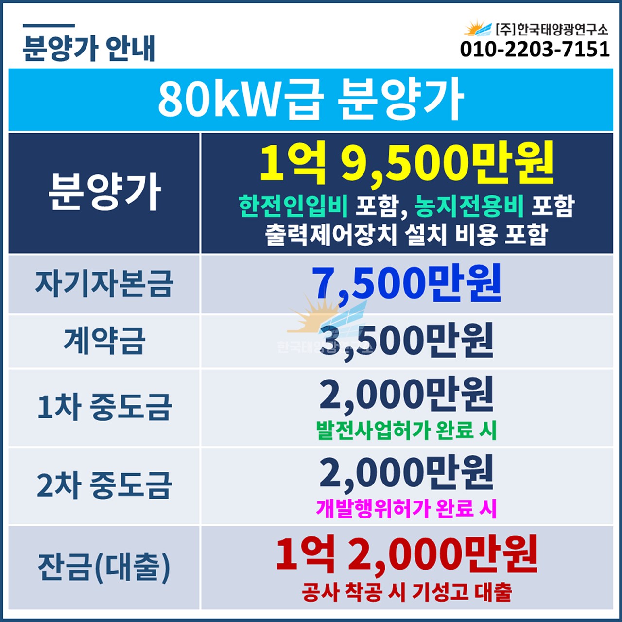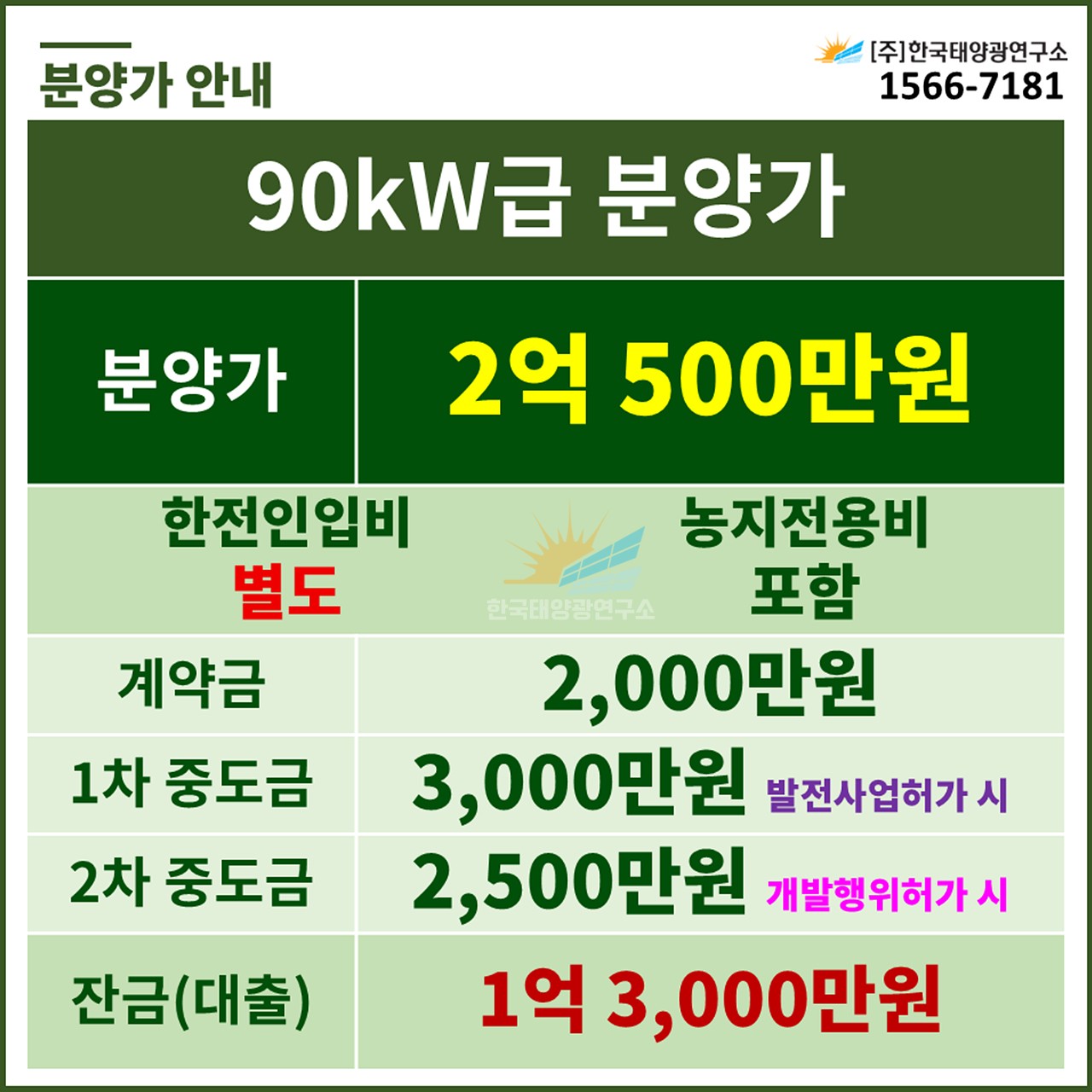 (한전인입비 별도, 농지전용비 포함 / 출력제어장치 설치 비용 별도)