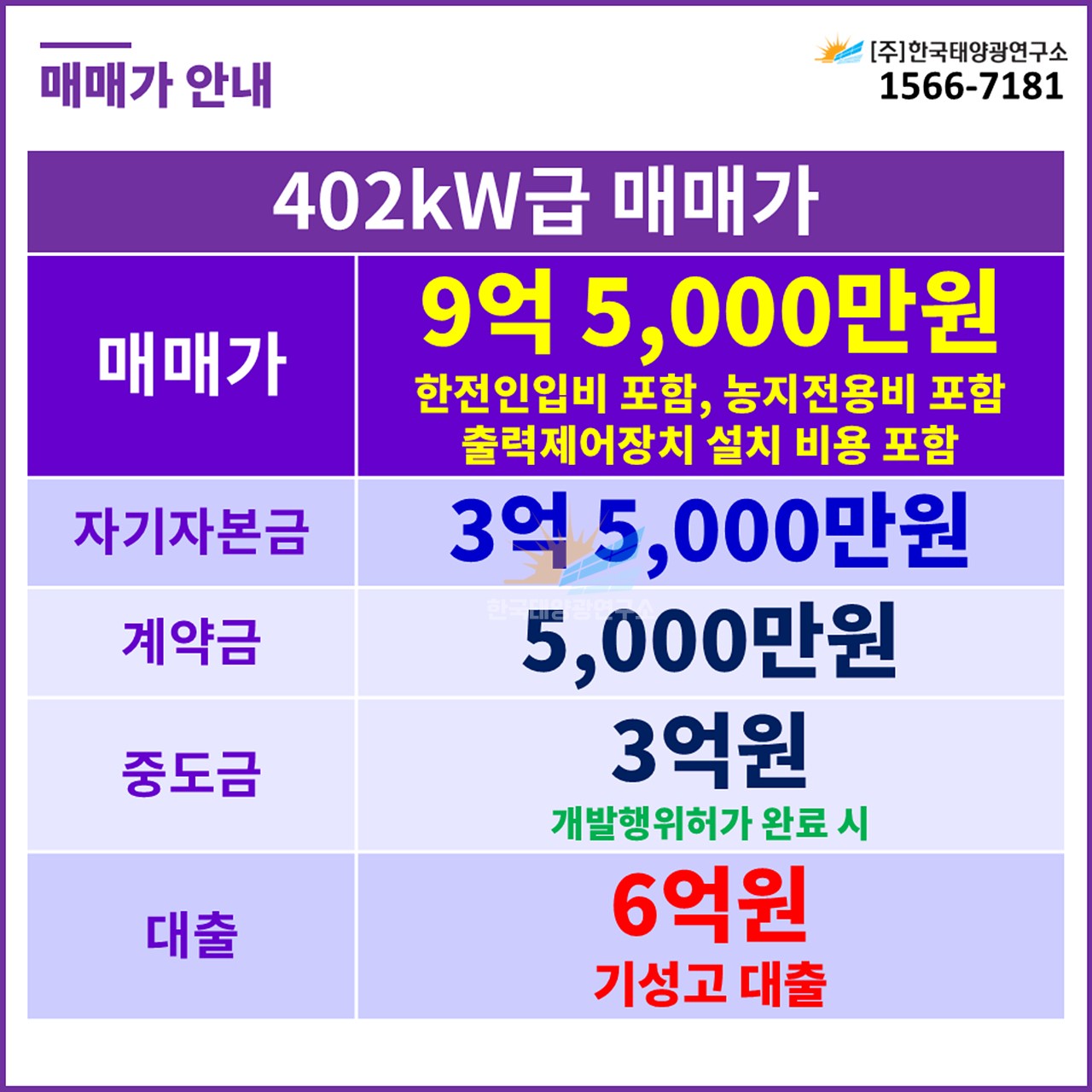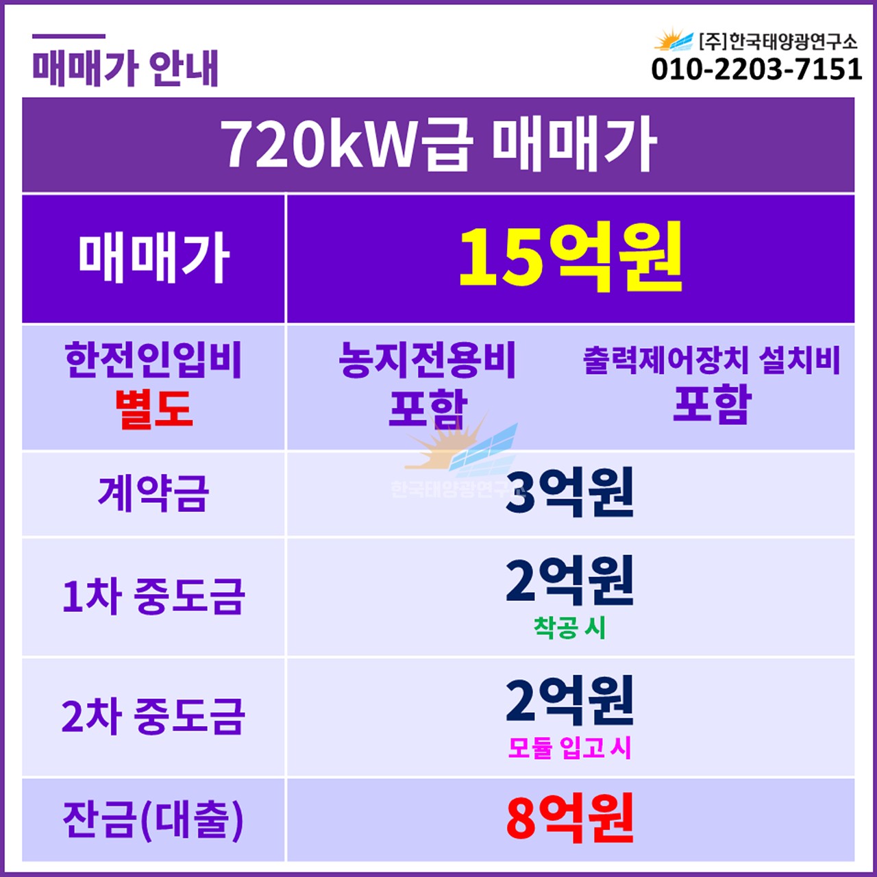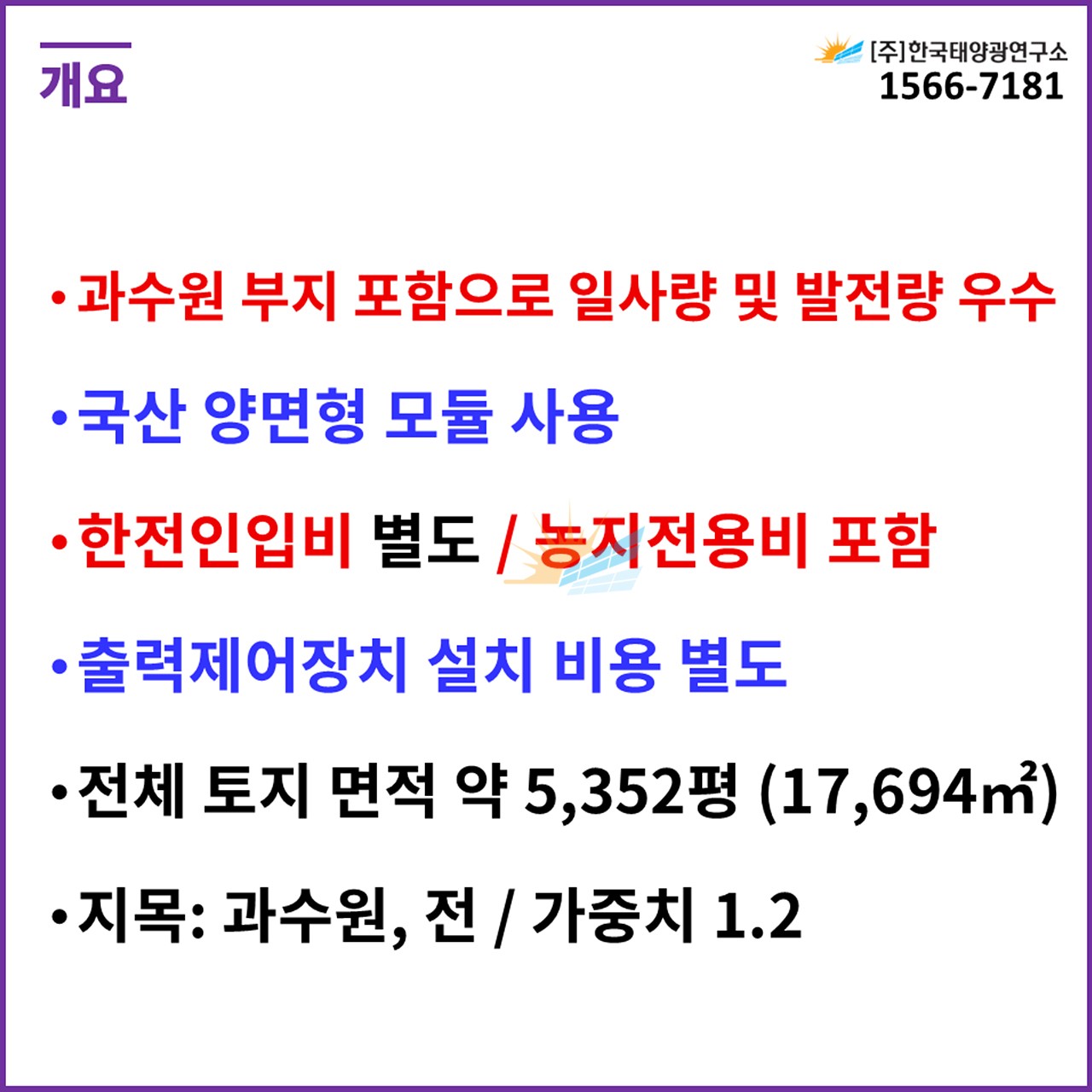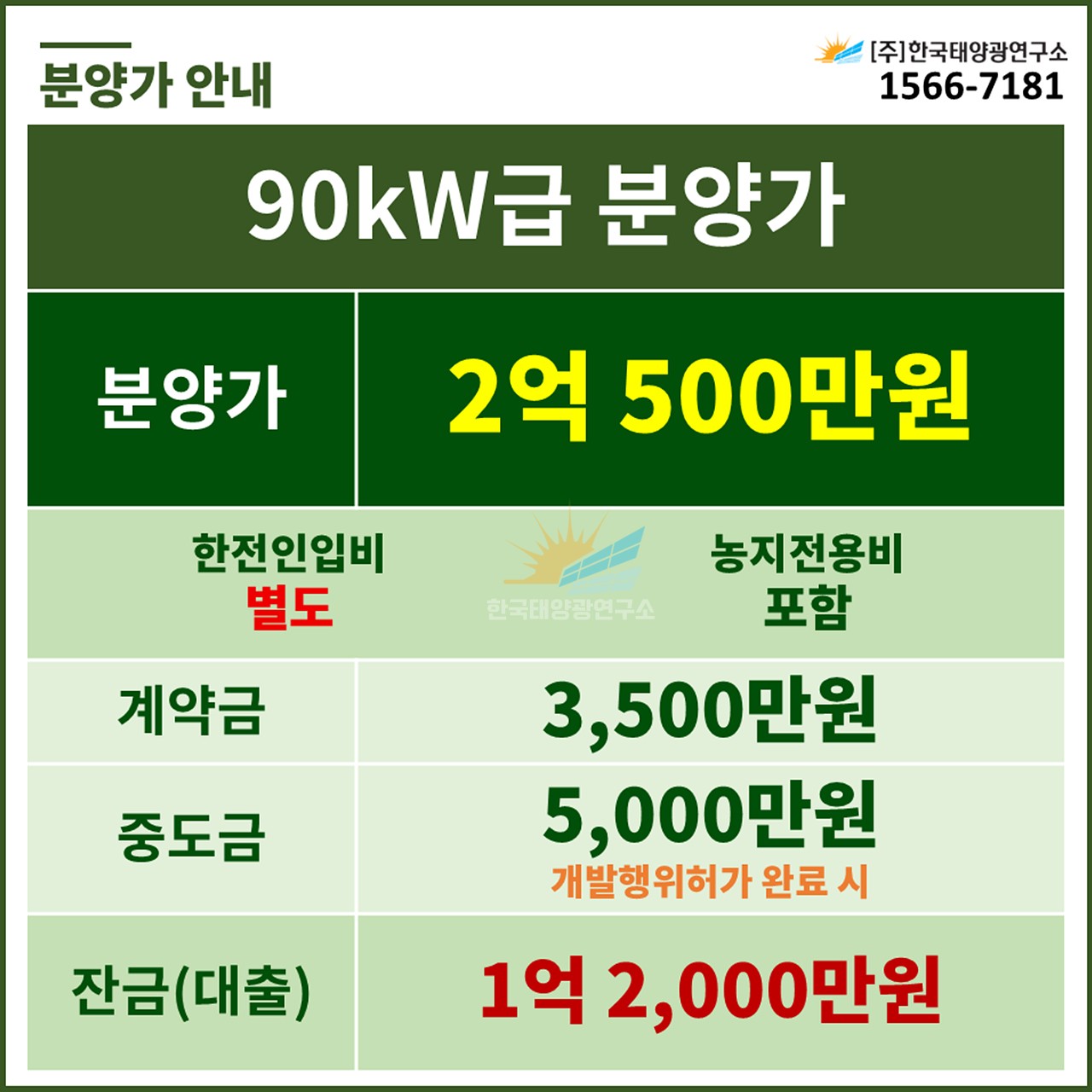 (한전인입비 별도, 농지전용비 포함 / 출력제어장치 설치 비용 별도)