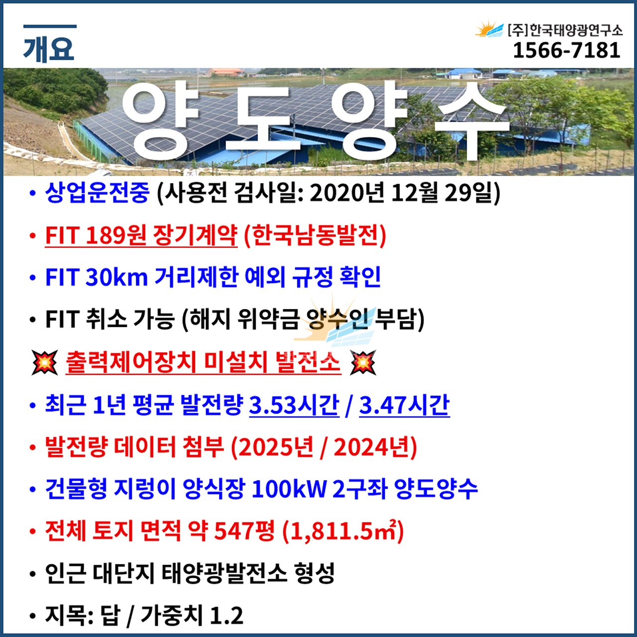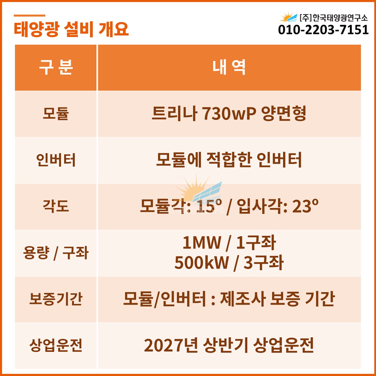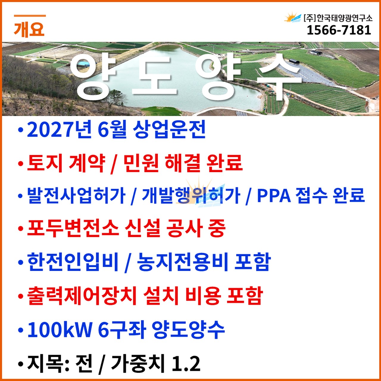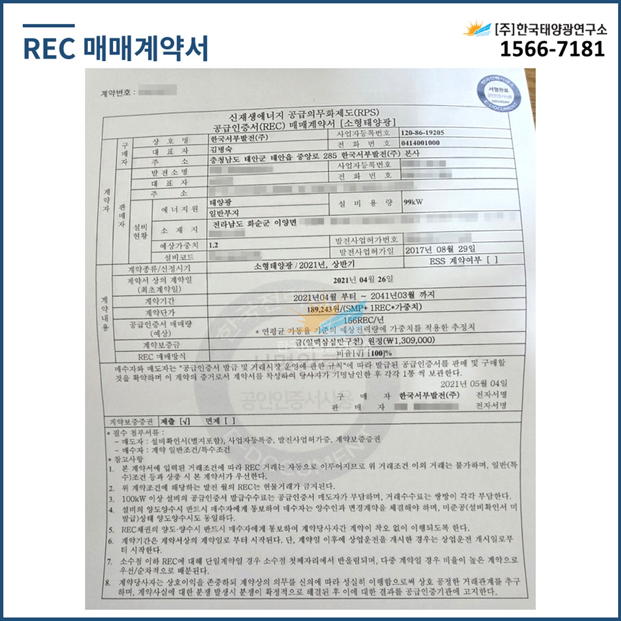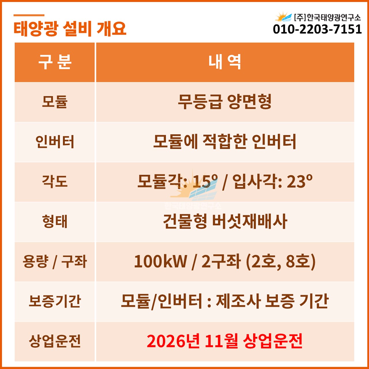 (한전인입비 별도, 농지전용비 포함 / 출력제어장치 설치 비용 별도)