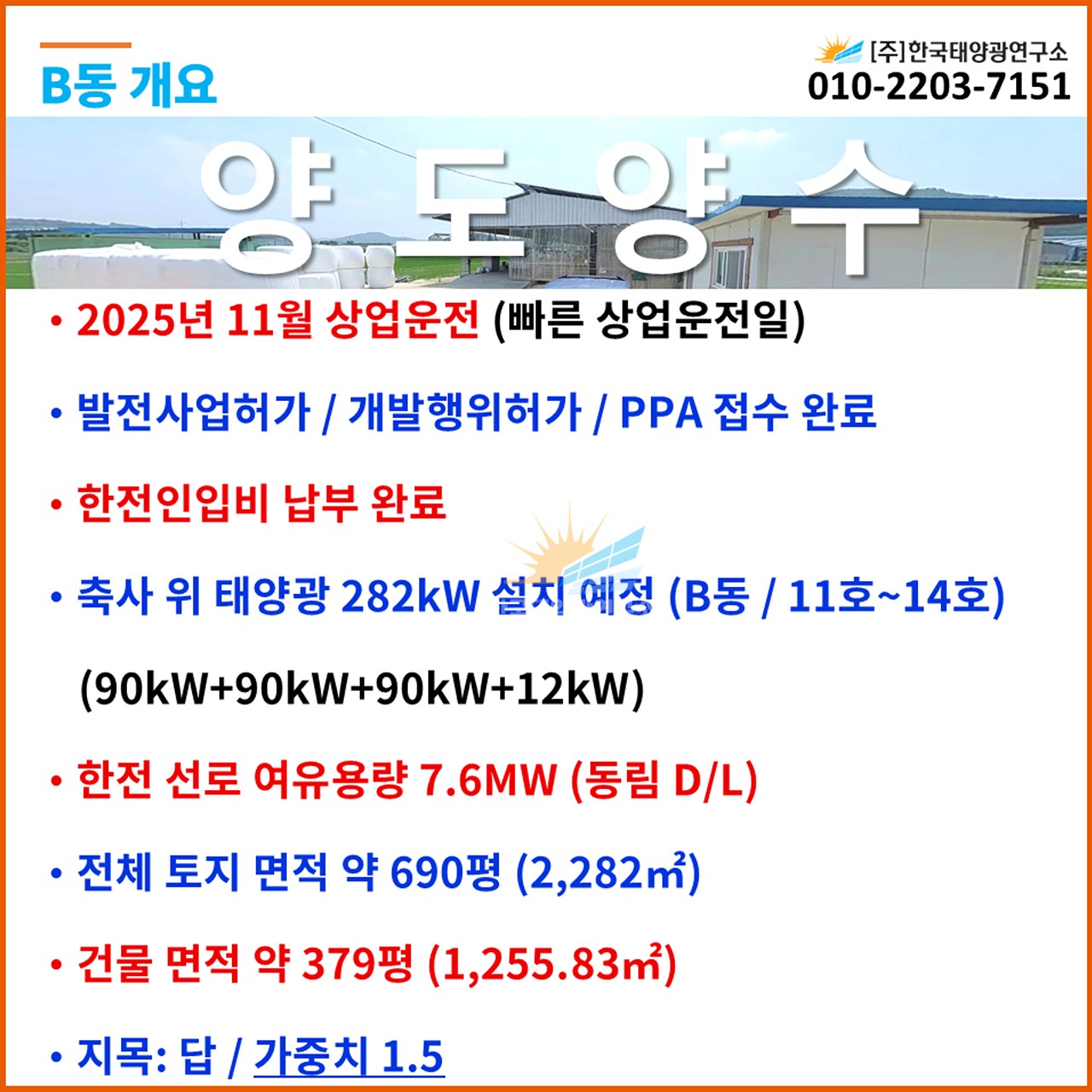 ✅ 축사 위 태양광 282kW 설치 예정 (B동 / 11호~14호)