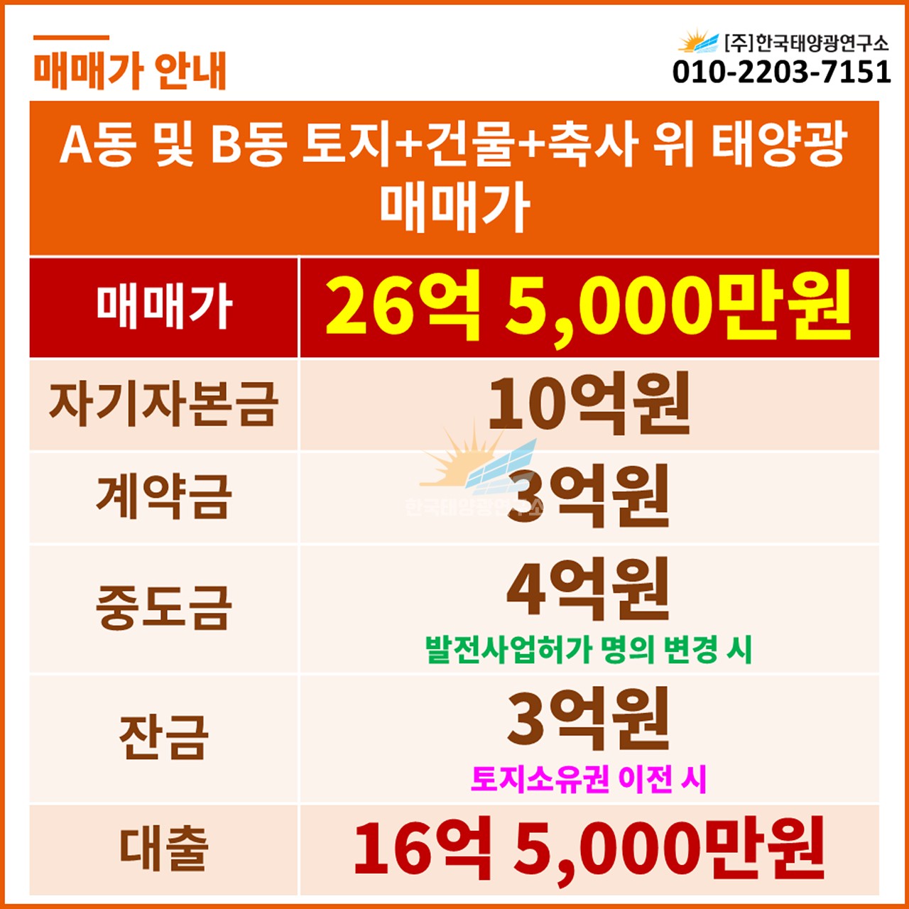 📌A동 및 B동 토지+건물+축사 위 태양광 매매가