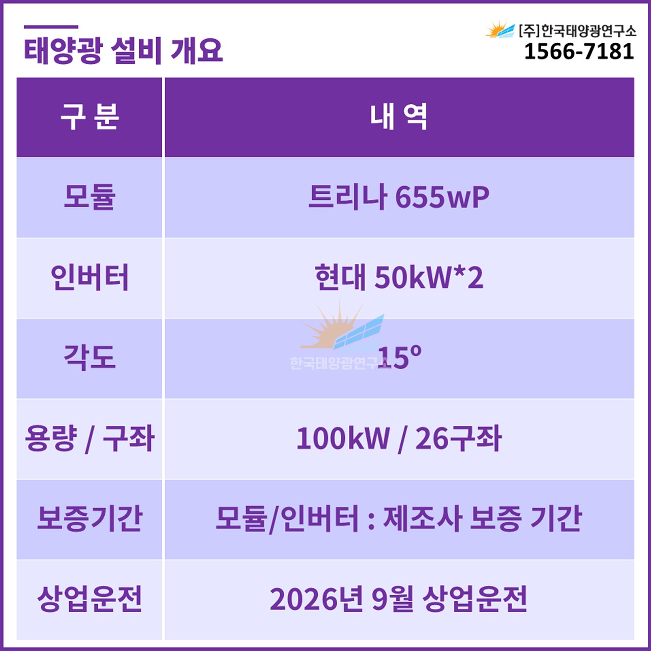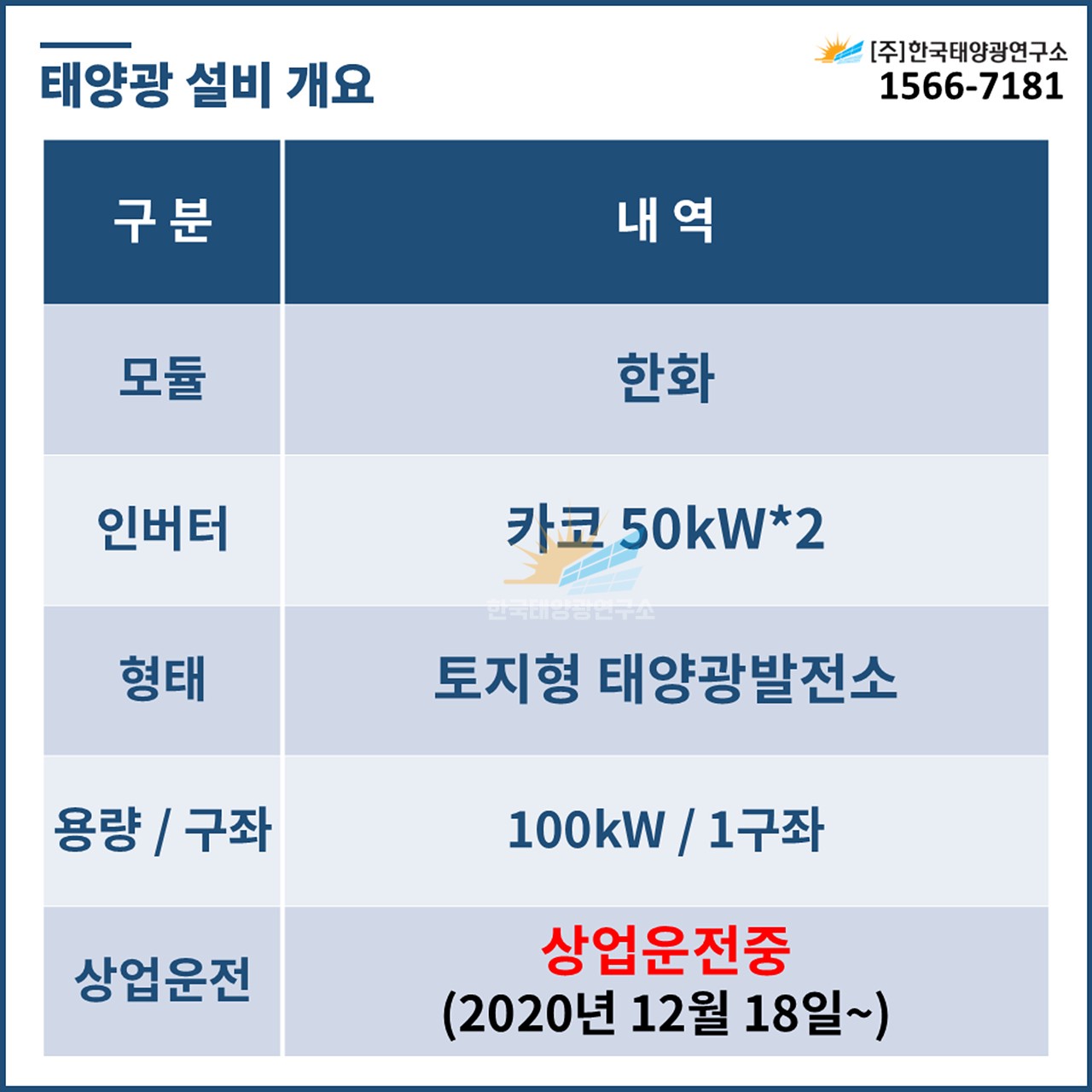토지형 태양광발전소 100㎾ 16구좌 (잔여 5구좌)