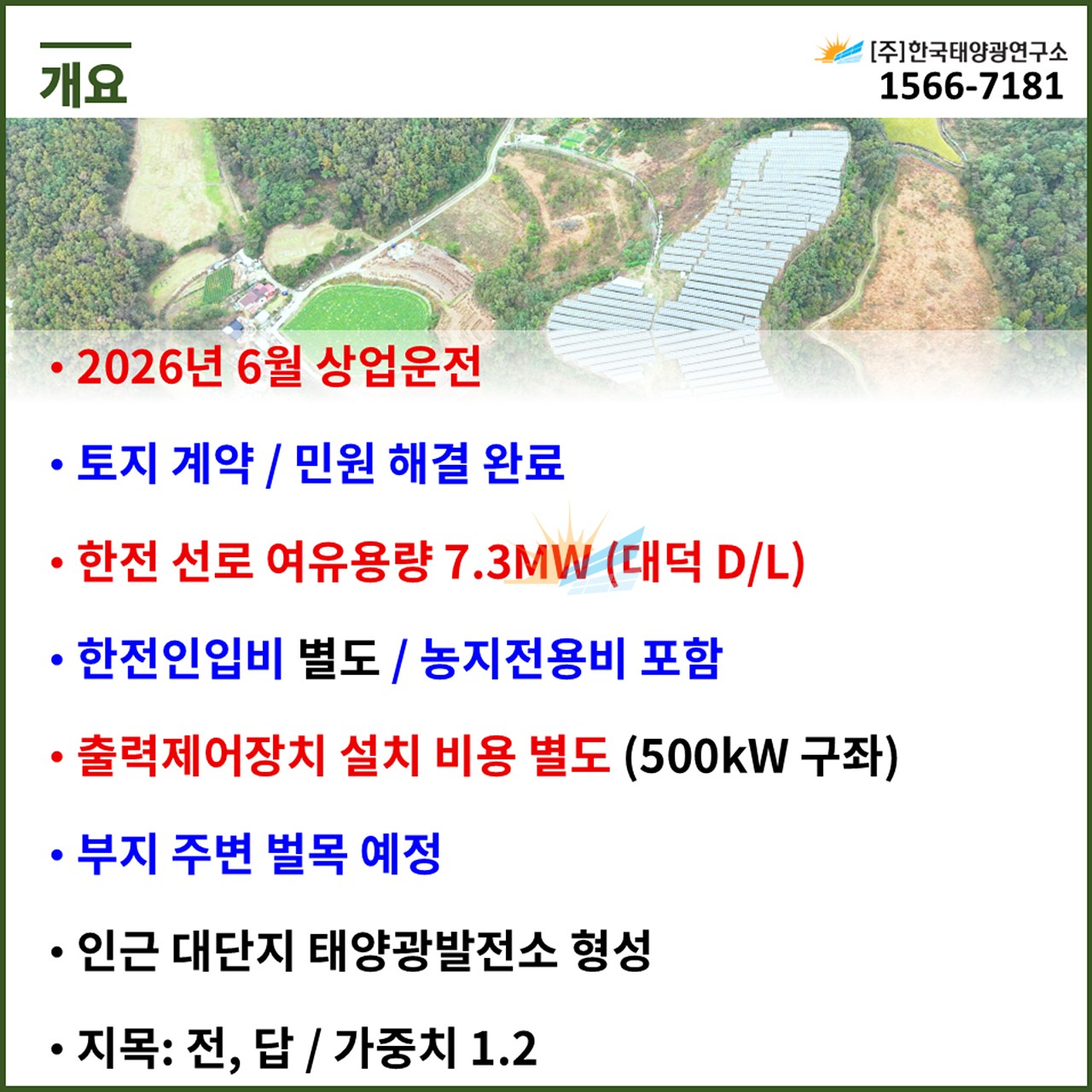 ✅ 한전 선로 여유용량 7.3MW (대덕 D/L)