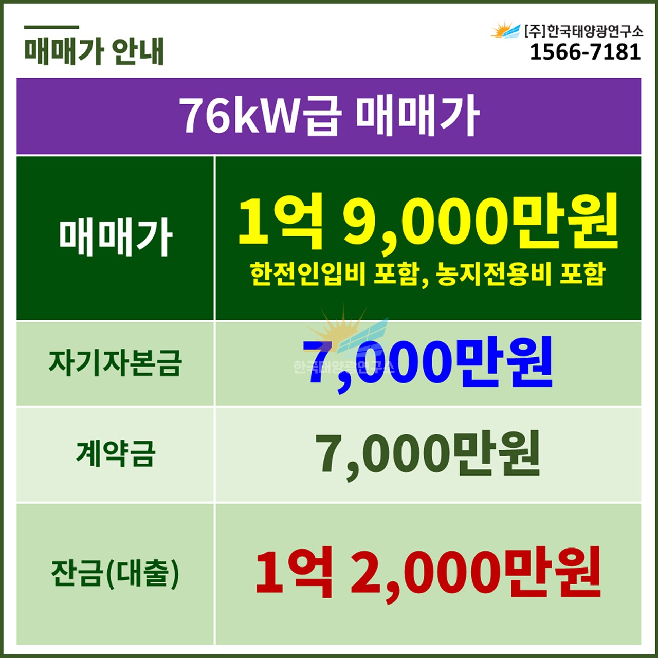 토지형 태양광발전소 100㎾ 2구좌 / 76㎾ 1구좌