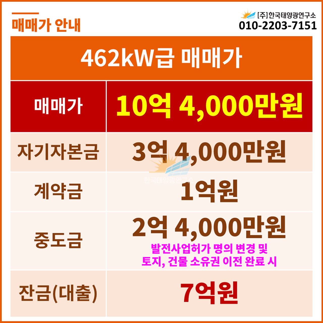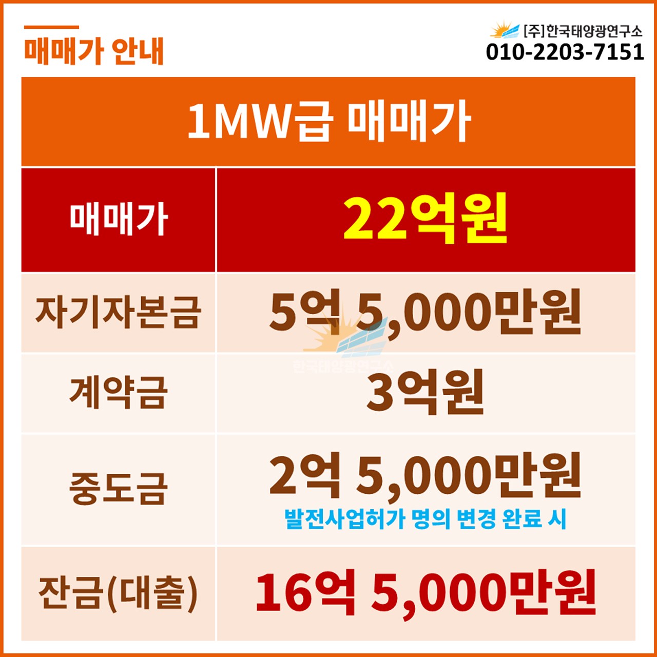 ✅ 중도금: 2억 5,000만원 (발전사업허가 명의 변경 완료 시)