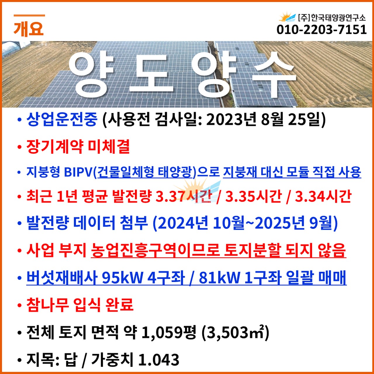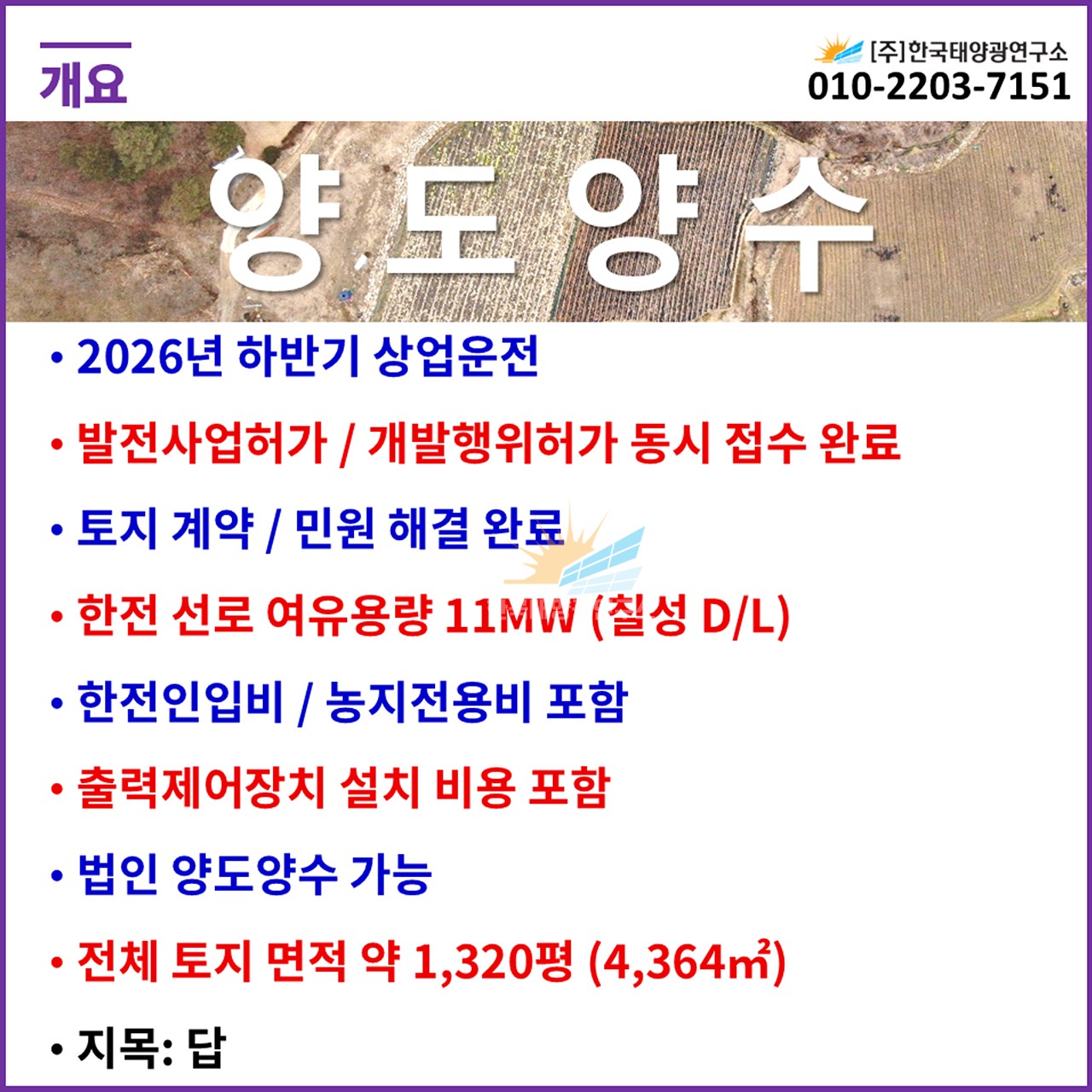 ✅ 분양가: 7억 3,300만원 (한전인입비 포함 / 출력제어장치 설치 비용 포함)