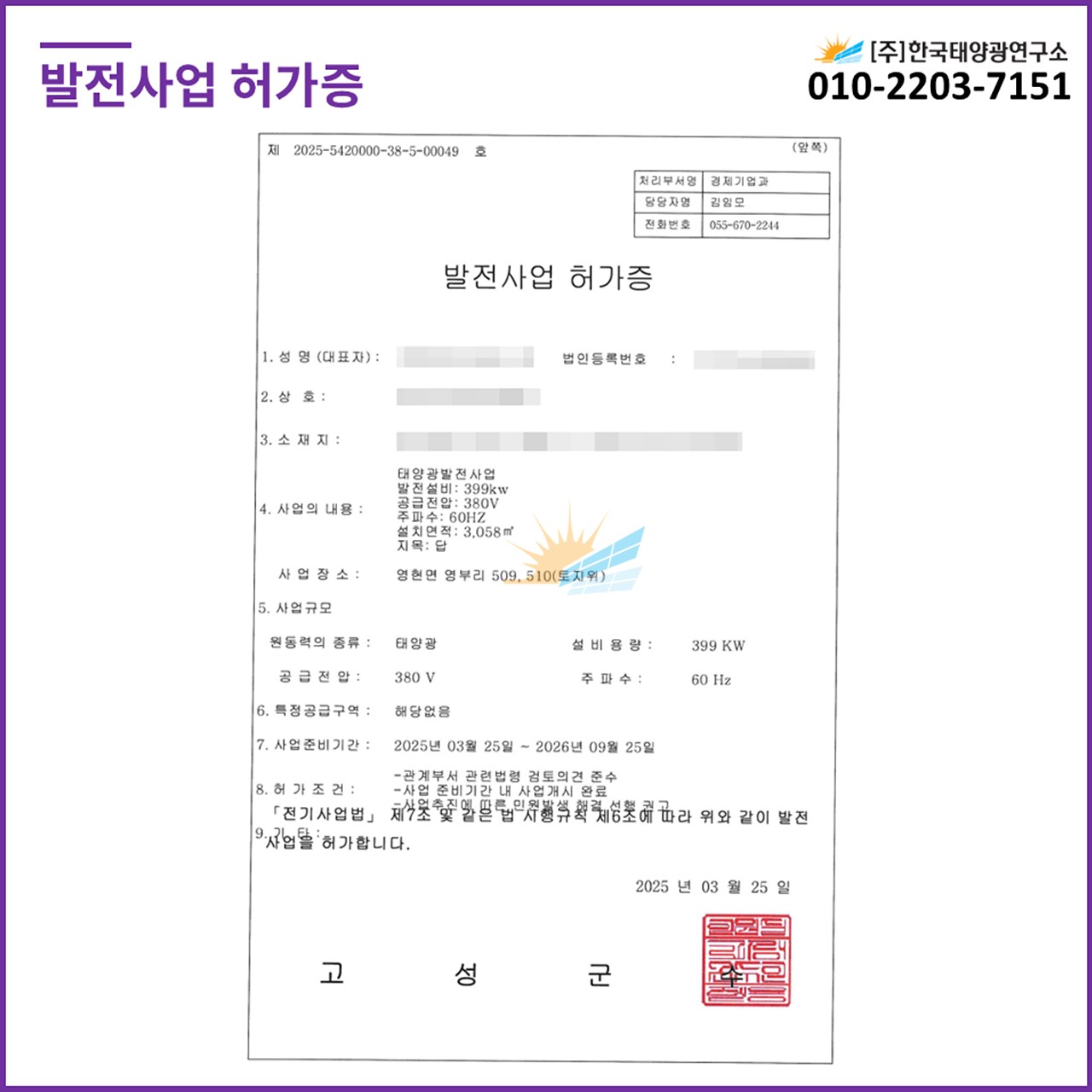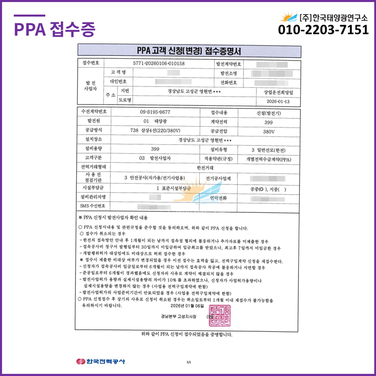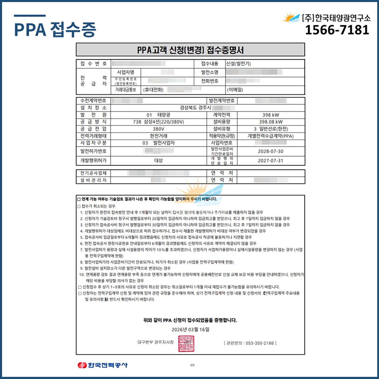 ✅ 발전사업허가 / 개발행위허가 / PPA 접수 완료