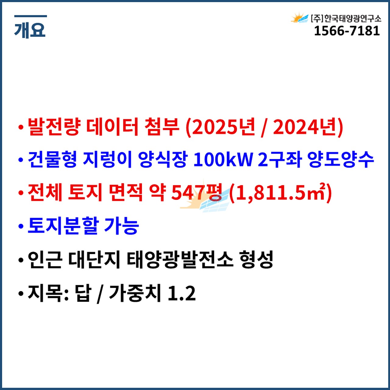 토지형 태양광발전소 100㎾ 6구좌 외 (잔여 2구좌)