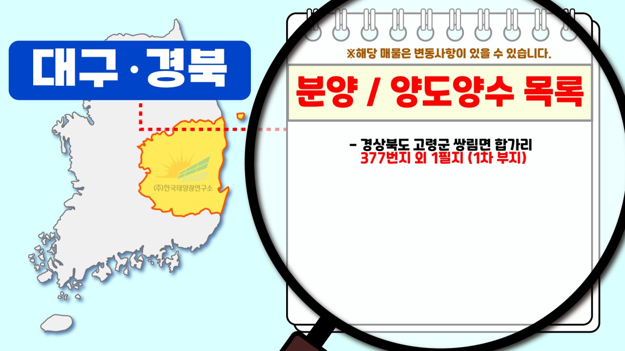 1. 경상북도 고령군 쌍림면 합가리 377번지 외 1필지 (1차 부지)