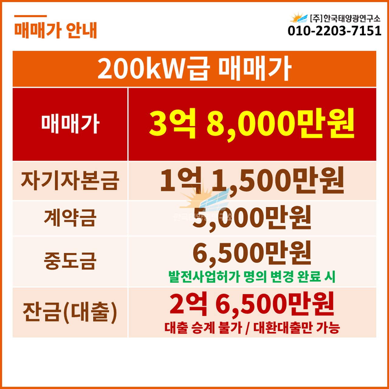 ✅ 중도금: 2억 4,000만원 (발전사업허가 명의 변경 및 토지, 건물 소유권 이전 완료 시)