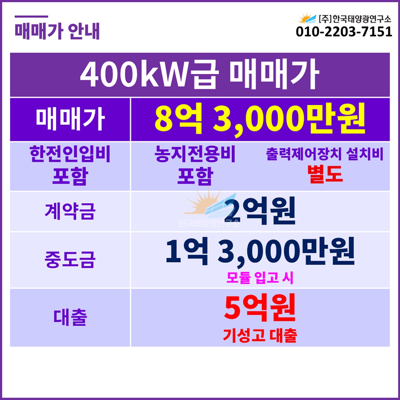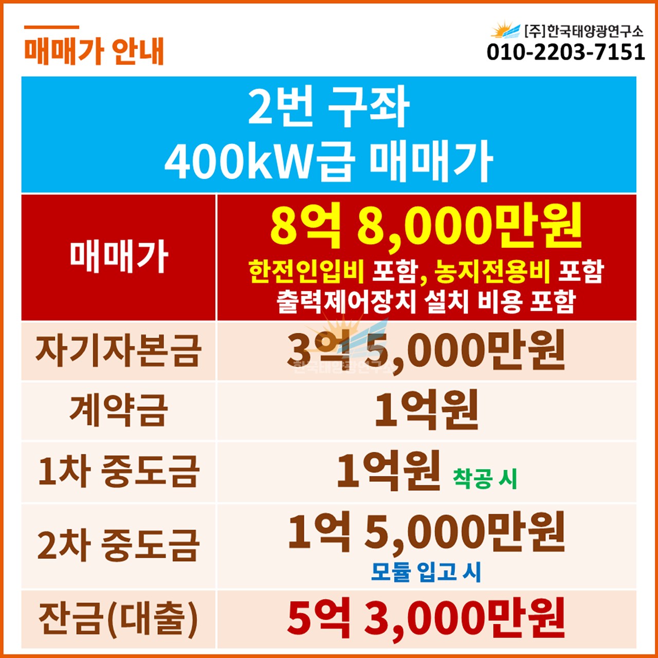 📌 400kW급 매매가 (2번 구좌)