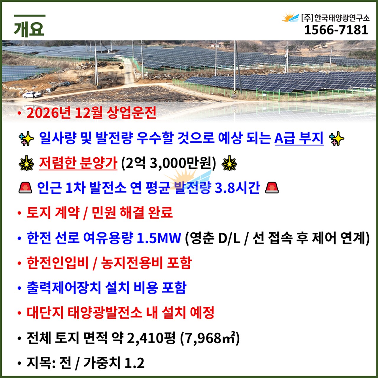 ✨ 일사량 및 발전량 우수할 것으로 예상 되는 A급 부지 ✨
