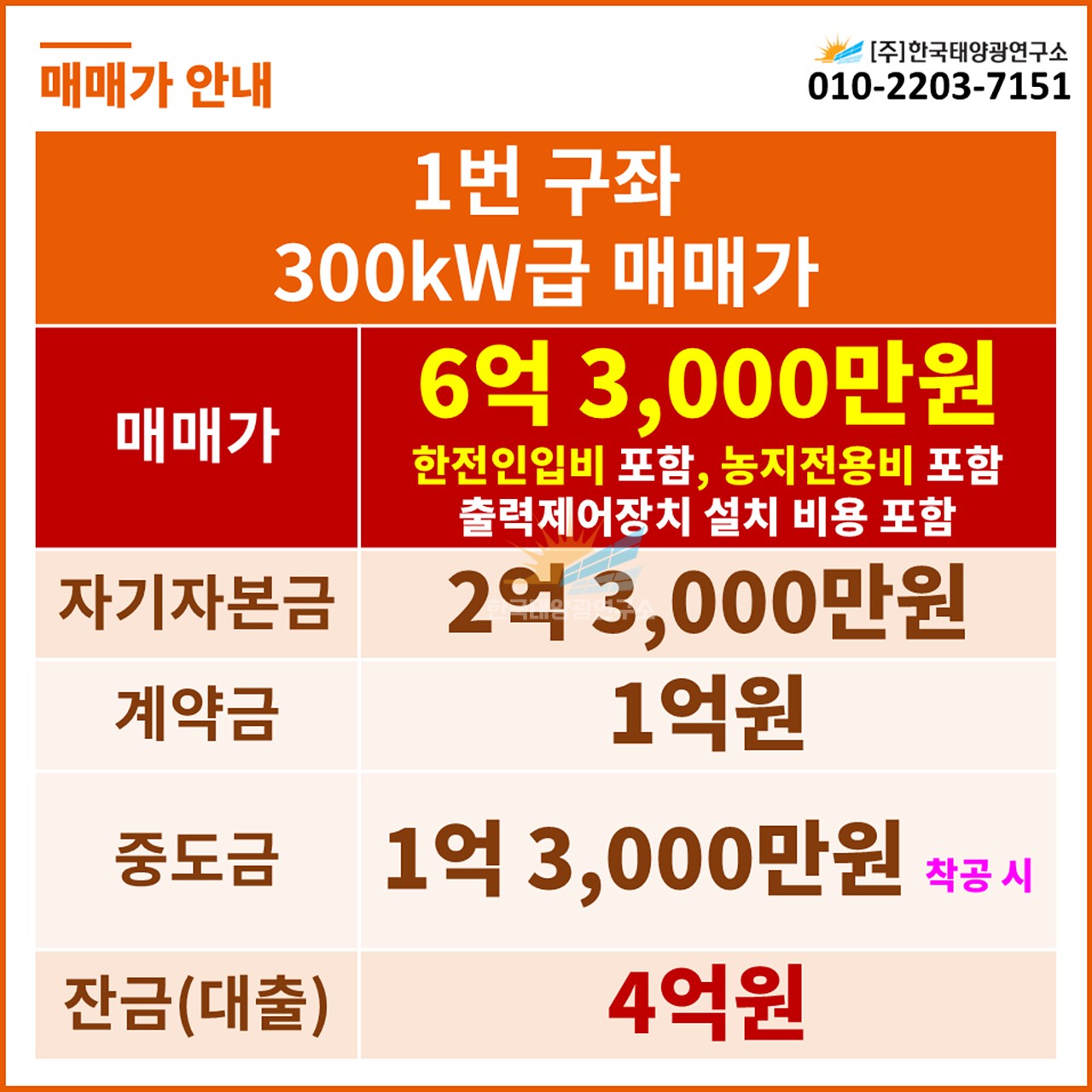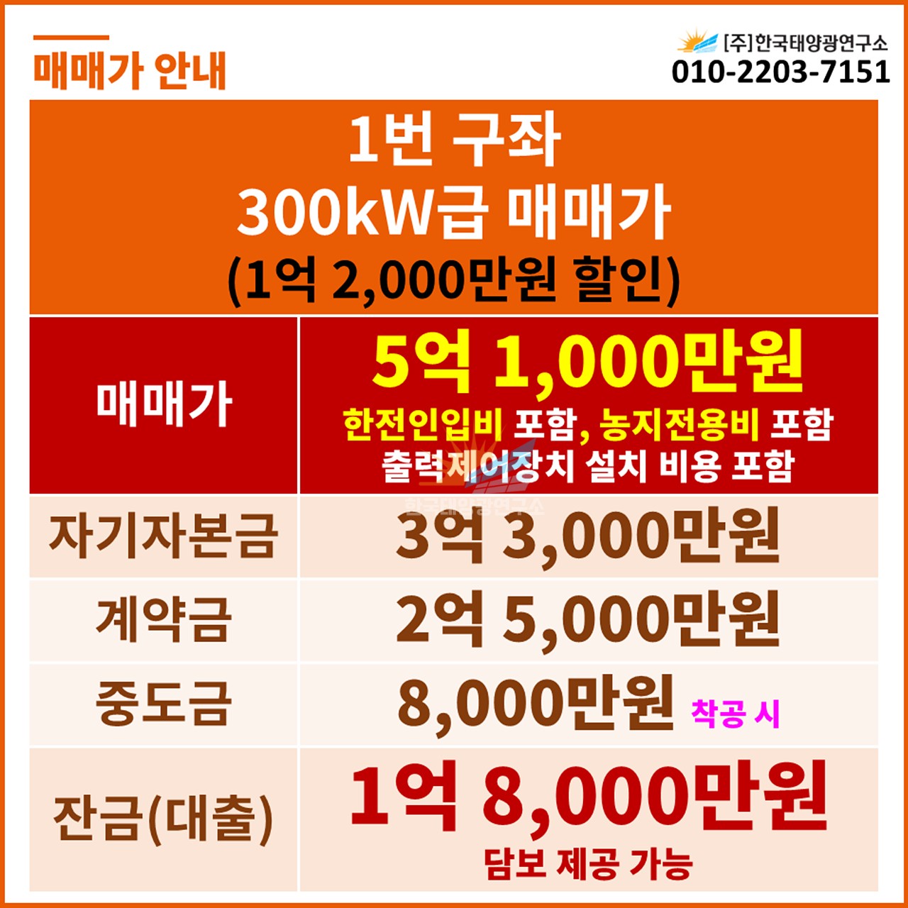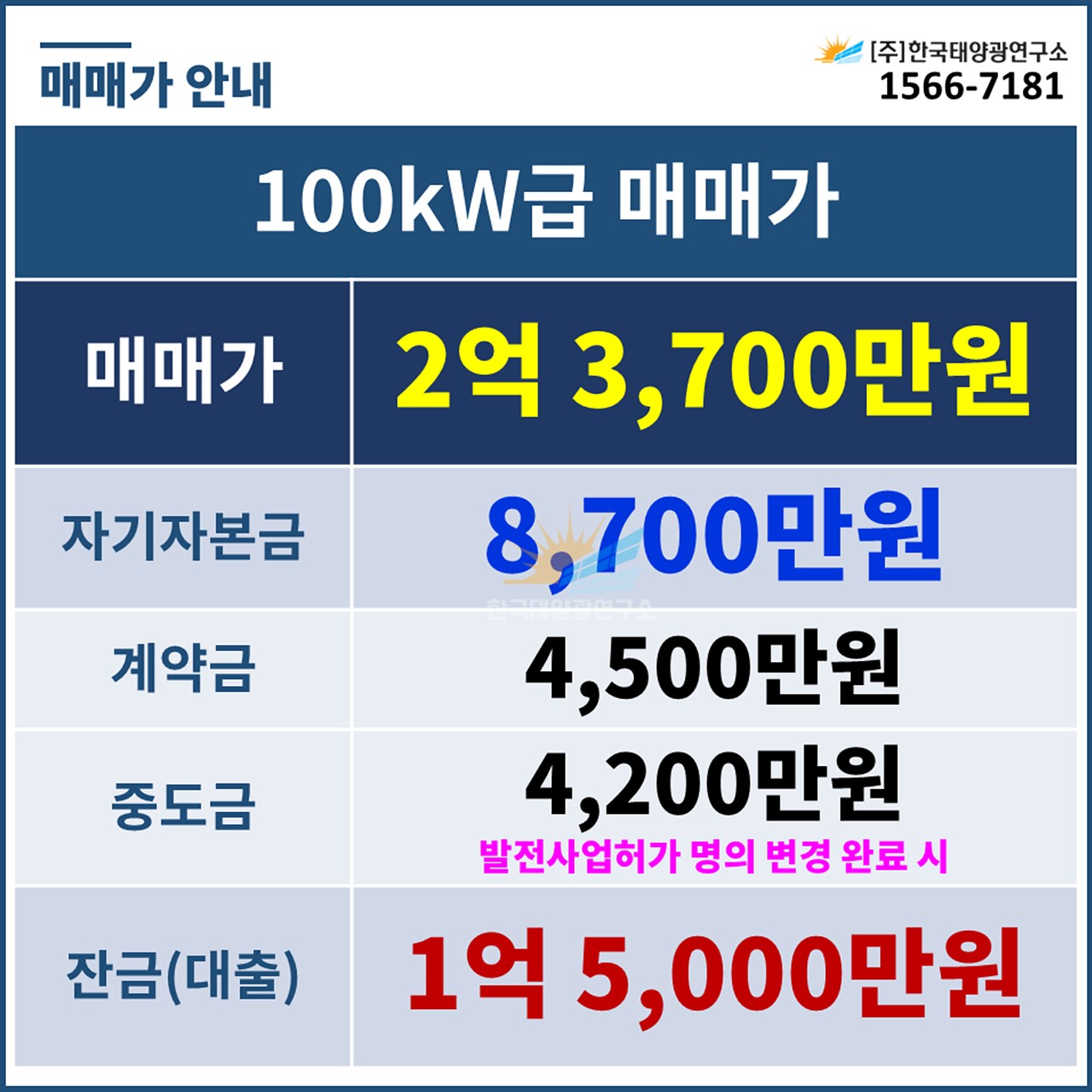 📌 300kW급 매매가 (1번 구좌 / 1억 2,000만원 할인)
