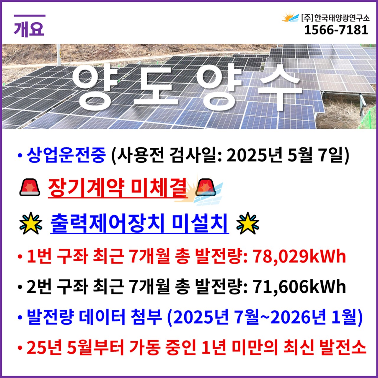 ✅ 25년 5월부터 가동 중인 1년 미만의 최신 발전소