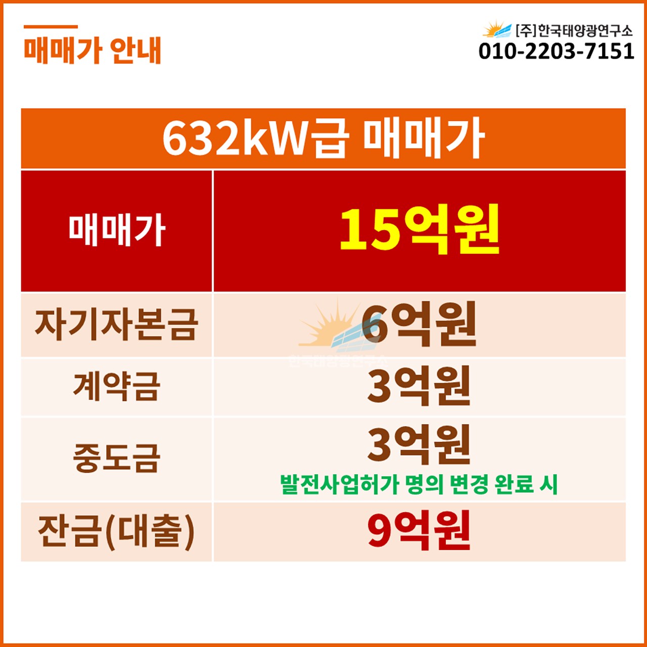 ✅ 중도금: 5,000만원 (발전사업허가 명의 변경 완료 시)