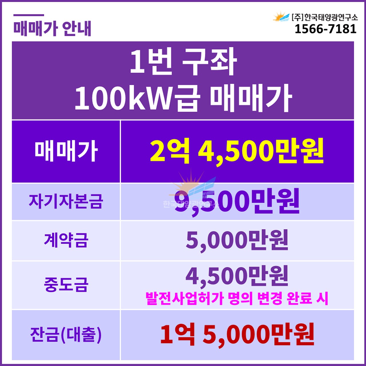 📌 100kW급 매매가 (1번 구좌)