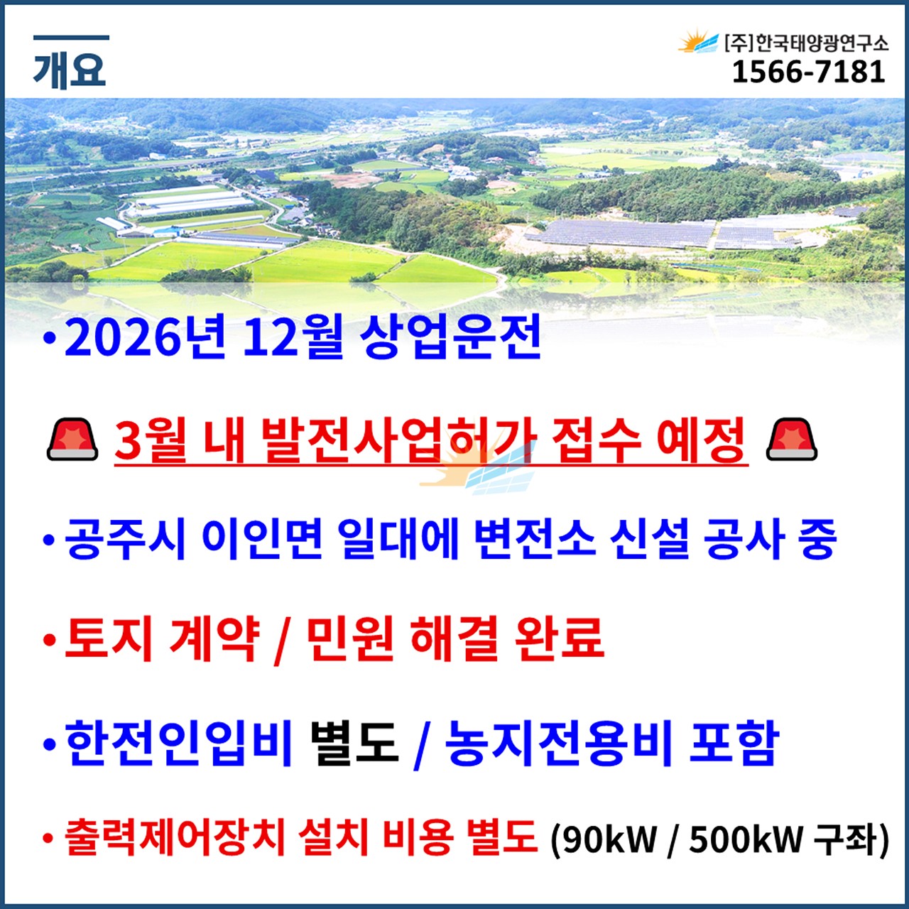 ✅ 출력제어장치 설치 비용 별도 (90kW / 500kW 구좌)