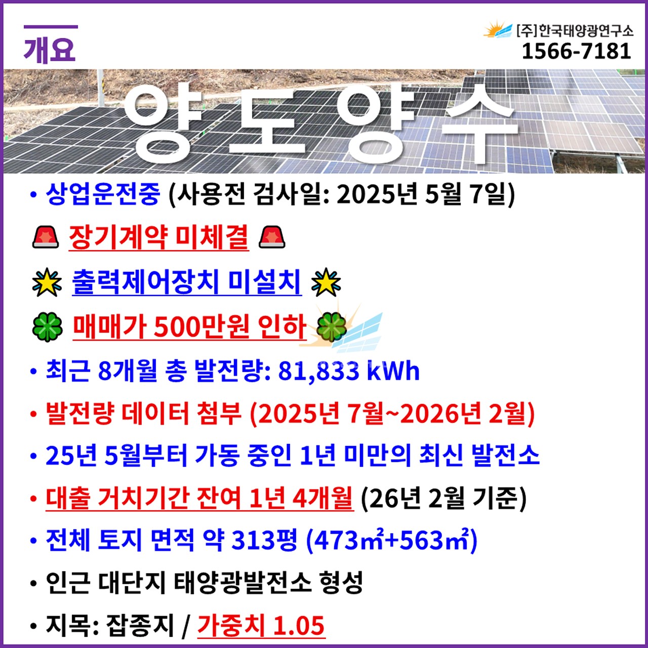 ✅ 500kW 잔여 3구좌 분양
