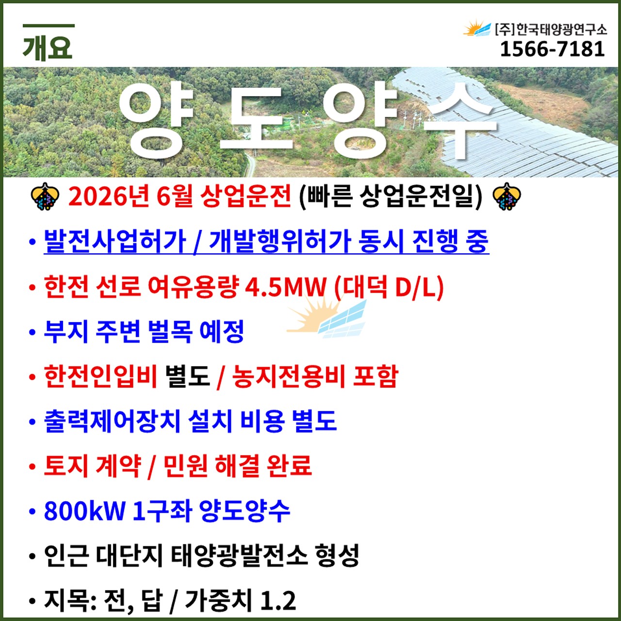 ✅ 매매가: 6억 2,000만원 (한전인입비 포함 / 출력제어장치 설치 비용 포함)