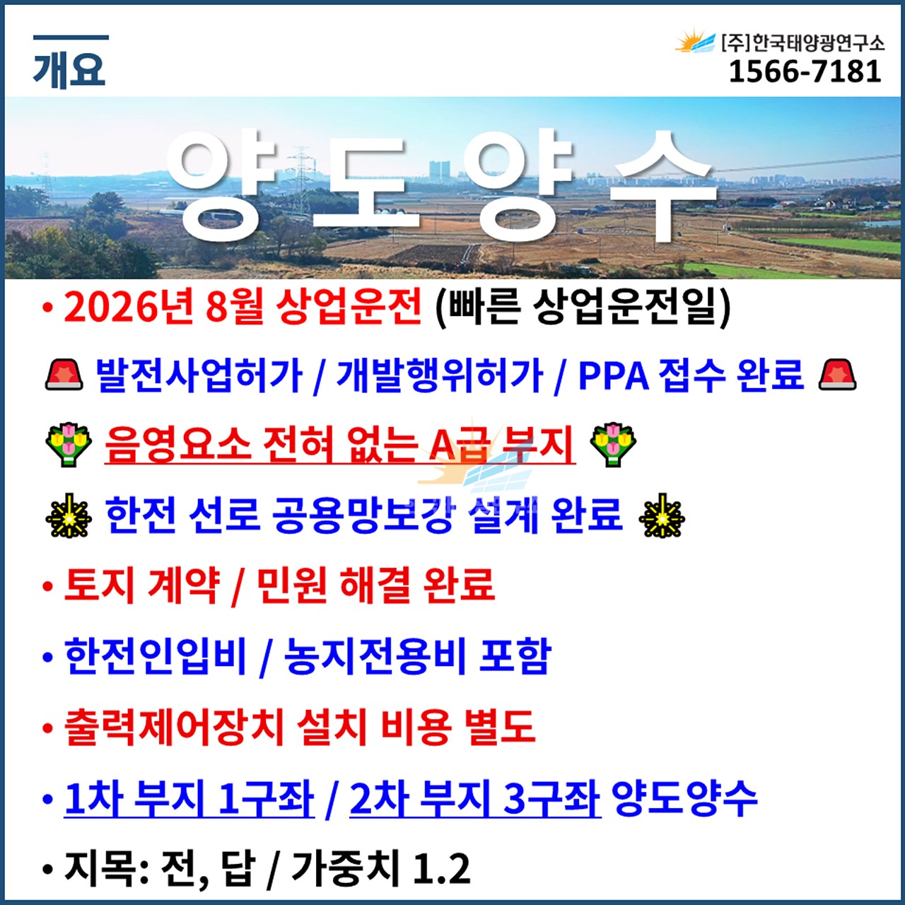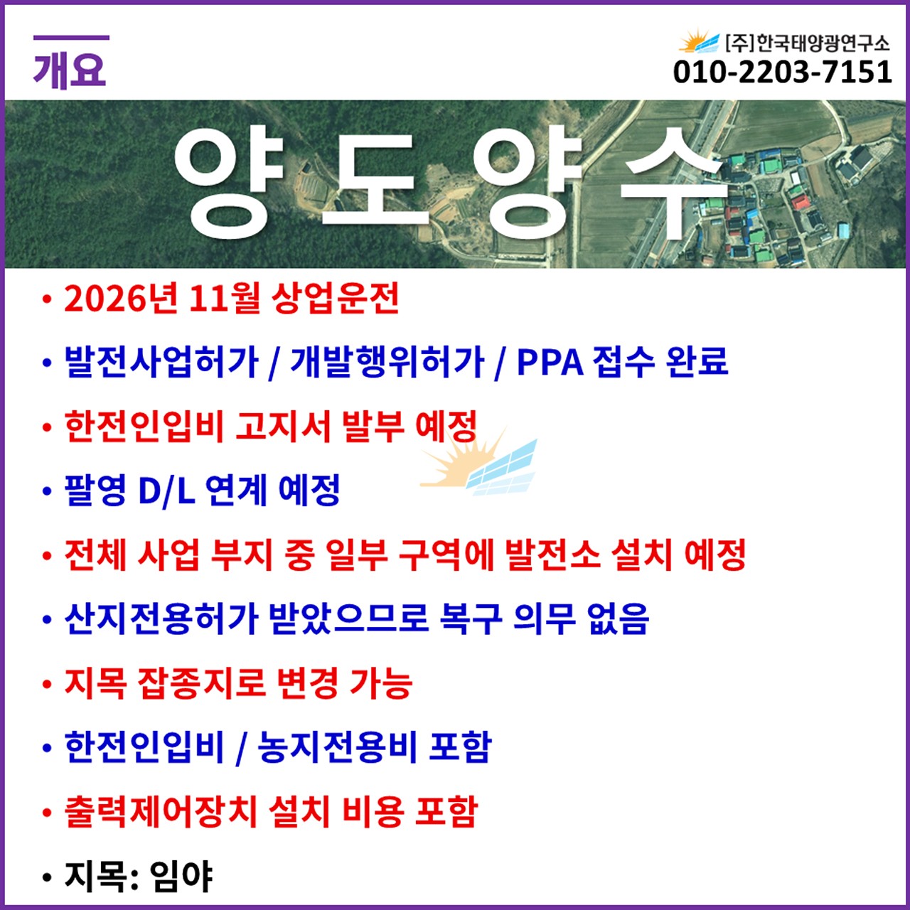 ✅ 한전인입비 별도 / 농지전용비 포함