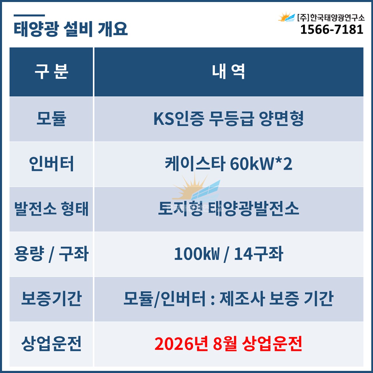 토지형 태양광발전소 100㎾ 14구좌 중 잔여 4구좌