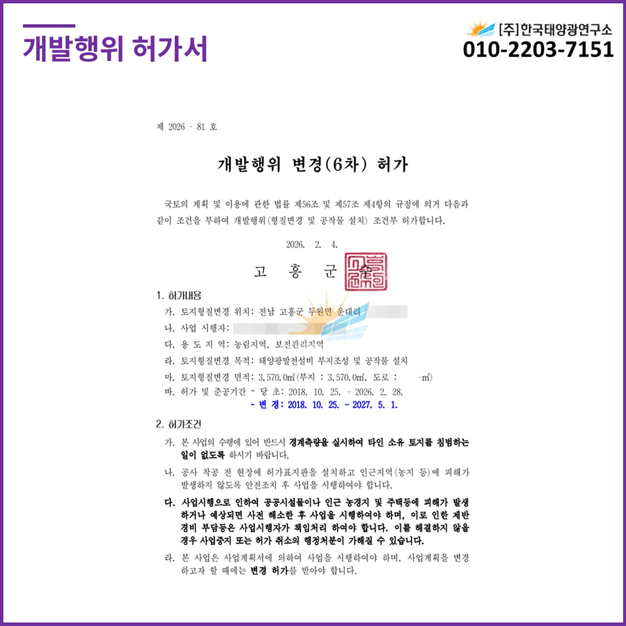 ✨ 발전사업허가 / 개발행위허가 완료 ✨