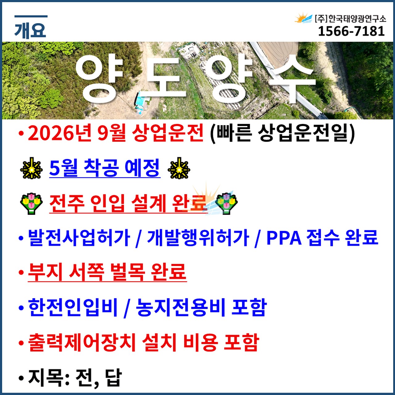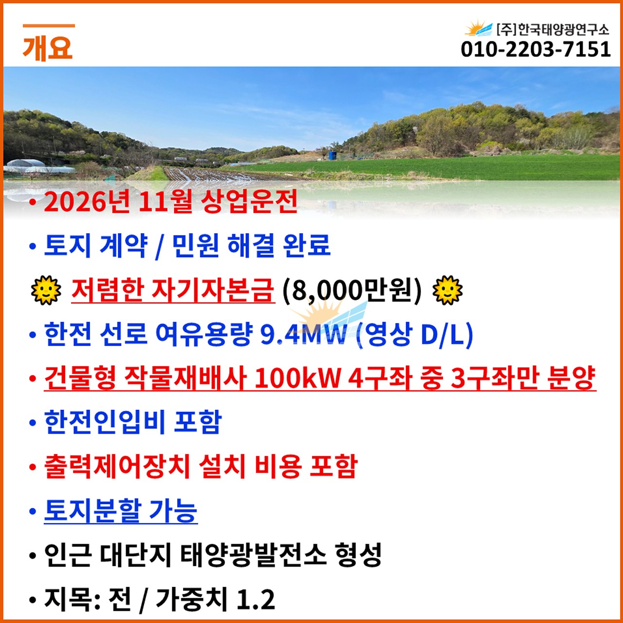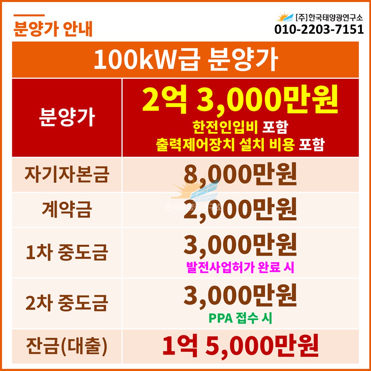 ✅ 분양가: 2억 3,000만원 (한전인입비 포함, 출력제어장치 설치 비용 포함)